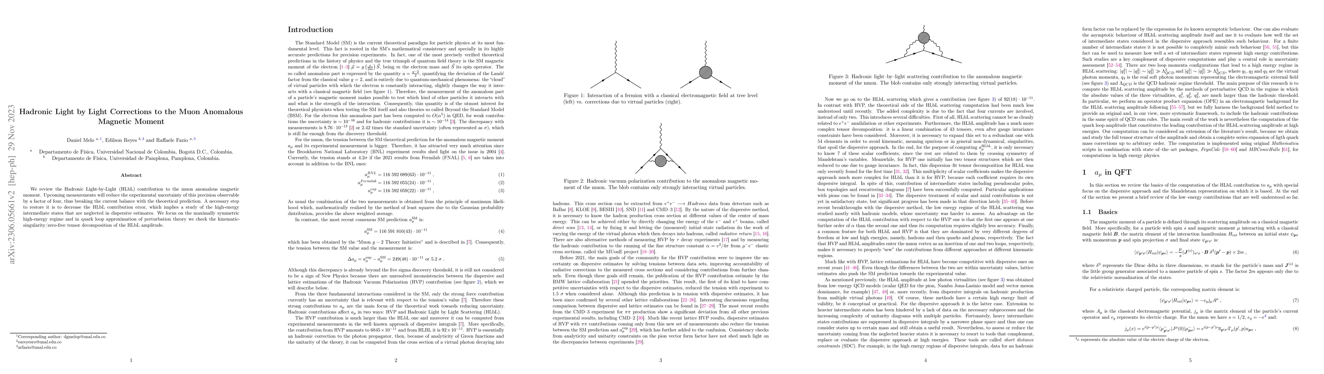 We review the Hadronic Light-by-Light (HLbL) contribution to the muon anomalous magnetic moment. Upcoming measurements will reduce the experimental uncertainty of this precision observable by a factor of four, thus breaking the current balance with the theoretical prediction. A necessary step to restore it is to decrease the HLbL contribution error, which implies a study of the high-energy intermediate states that are neglected in dispersive estimates. We focus on the maximally symmetric high-energy regime and in quark loop approximation of perturbation theory we check the kinematic-singularity/zero-free tensor decomposition of the HLbL amplitude.