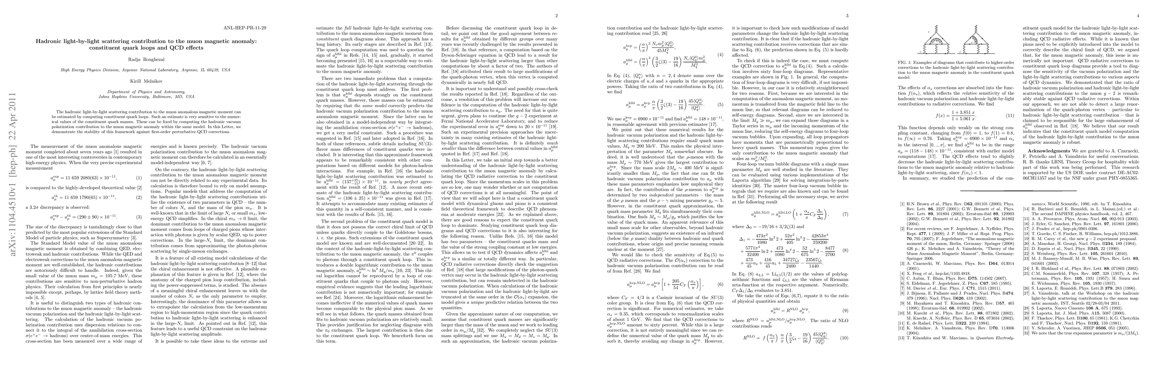 This paper estimates the hadronic light-by-light scattering contribution to the muon magnetic anomaly using constituent quark loops and assesses the impact of QCD corrections. It finds the framework stable against first-order perturbative QCD effects.