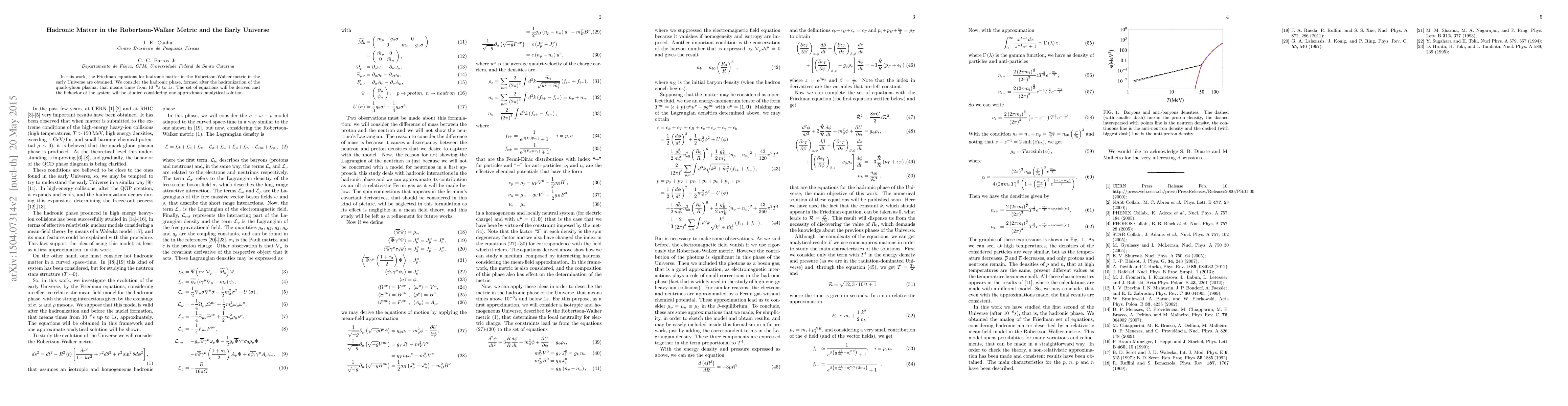This paper derives Friedman equations for hadronic matter within the Robertson-Walker metric in the early Universe, focusing on the hadronic phase from 10^-6s to 1s post-hadronization of quark-gluon plasma, and analyzes the system's behavior through an approximate analytical solution.