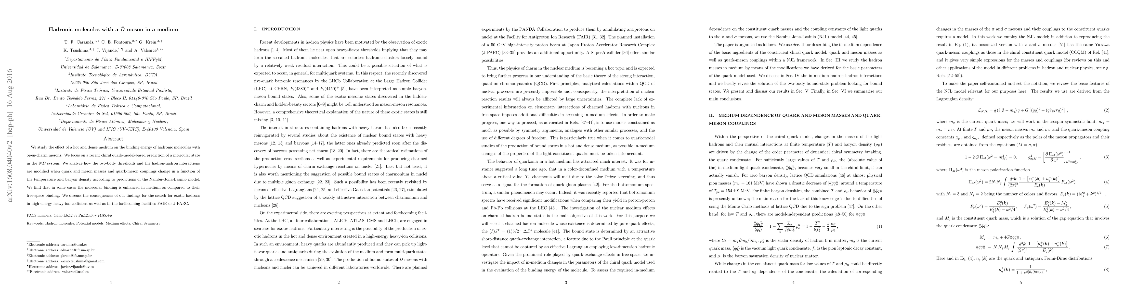 We study the effect of a hot and dense medium on the binding energy of hadronic molecules with open-charm mesons. We focus on a recent chiral quark-model-based prediction of a molecular state in the $N \bar D$ system. We analyze how the two-body thresholds and the hadron-hadron interactions are modified when quark and meson masses and quark-meson couplings change in a function of the temperature and baryon density according to predictions of the Nambu--Jona-Lasinio model. We find that in some cases the molecular binding is enhanced in medium as compared to their free-space binding. We discuss the consequences of our findings for the search for exotic hadrons in high-energy heavy-ion collisions as well as in the forthcoming facilities FAIR or J-PARC.