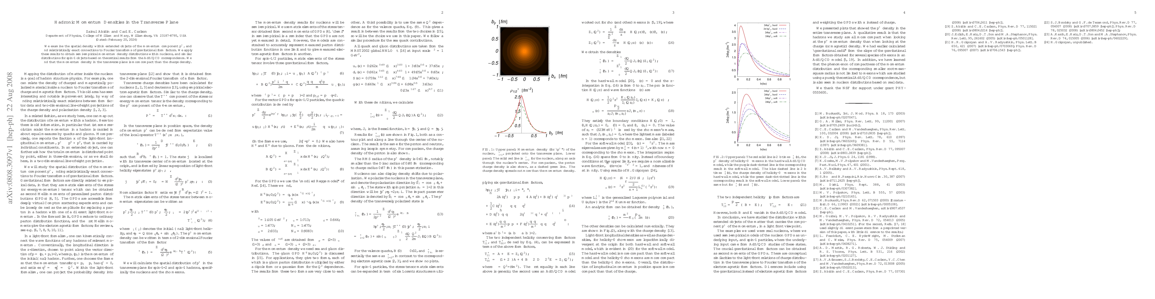 Researchers found that momentum density in the transverse plane is more compact than charge density in extended objects, with connections to Fourier transforms of gravitational form factors.