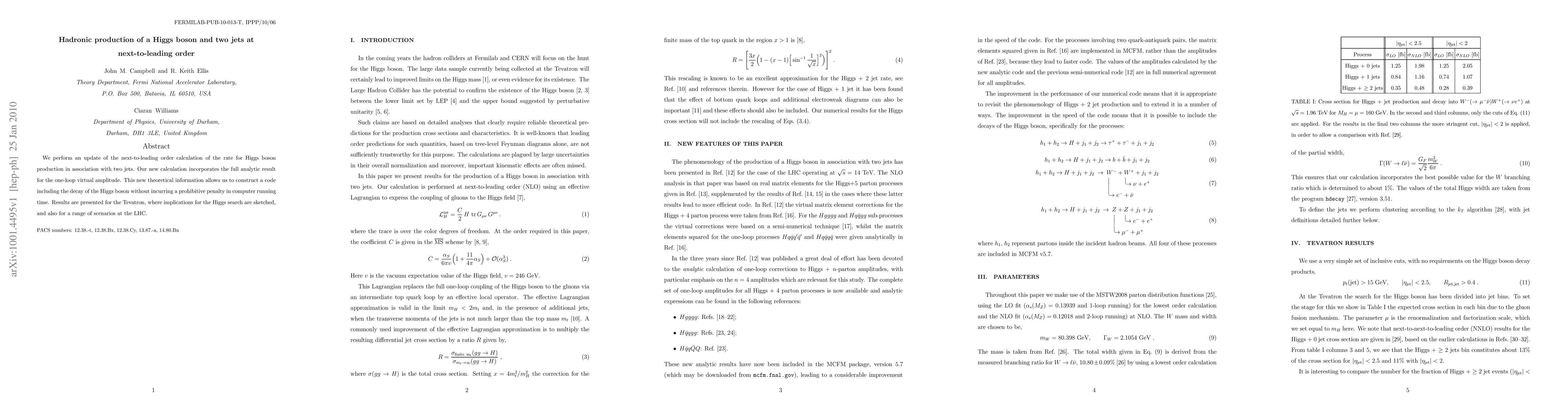 We perform an update of the next-to-leading order calculation of the rate for Higgs boson production in association with two jets. Our new calculation incorporates the full analytic result for the one-loop virtual amplitude. This new theoretical information allows us to construct a code including the decay of the Higgs boson without incurring a prohibitive penalty in computer running time. Results are presented for the Tevatron, where implications for the Higgs search are sketched, and also for a range of scenarios at the LHC.