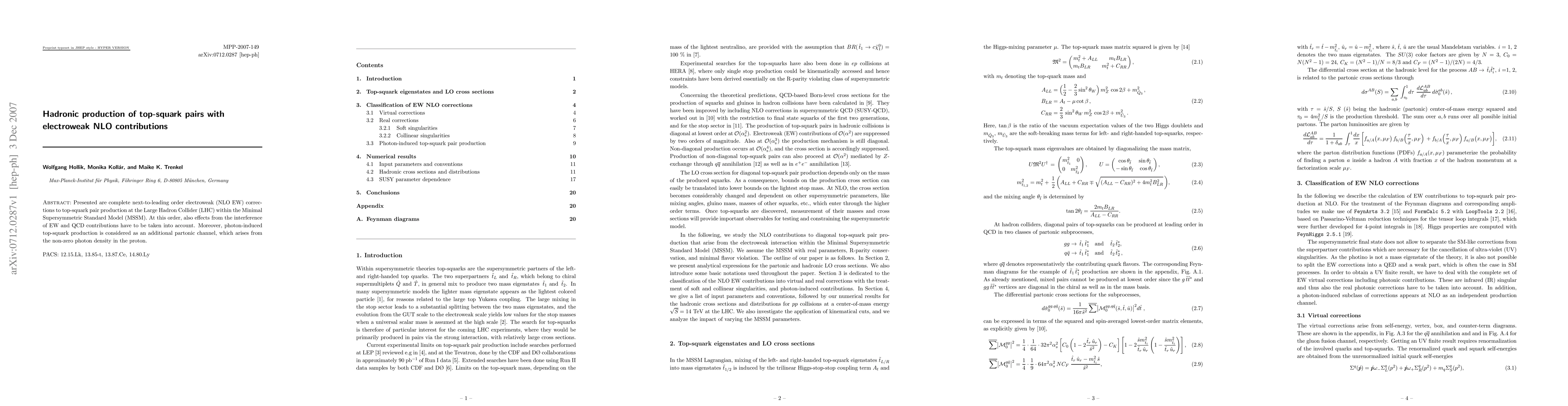 Presented are complete next-to-leading order electroweak (NLO EW) corrections to top-squark pair production at the Large Hadron Collider (LHC) within the Minimal Supersymmetric Standard Model (MSSM). At this order, also effects from the interference of EW and QCD contributions have to be taken into account. Moreover, photon-induced top-squark production is considered as an additional partonic channel, which arises from the non-zero photon density in the proton.