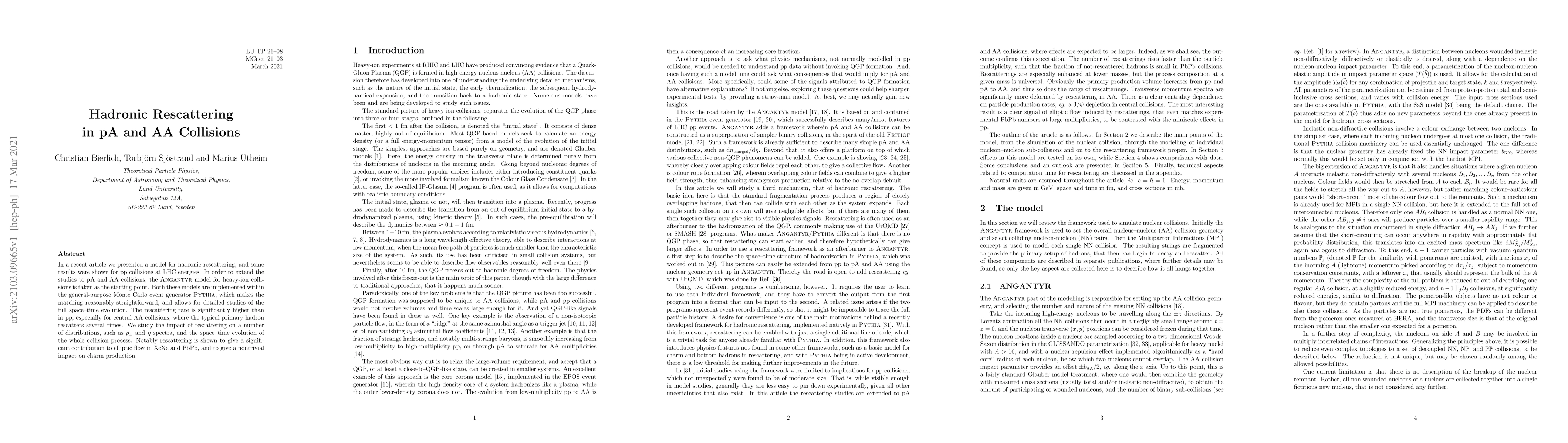 This paper extends a model for hadronic rescattering, initially developed for pp collisions, to pA and AA collisions using the Angantyr model and implemented in Pythia. It finds that rescattering rates are significantly higher in AA collisions, especially central ones, and notably impacts pT and eta spectra, elliptic flow, and charm production.