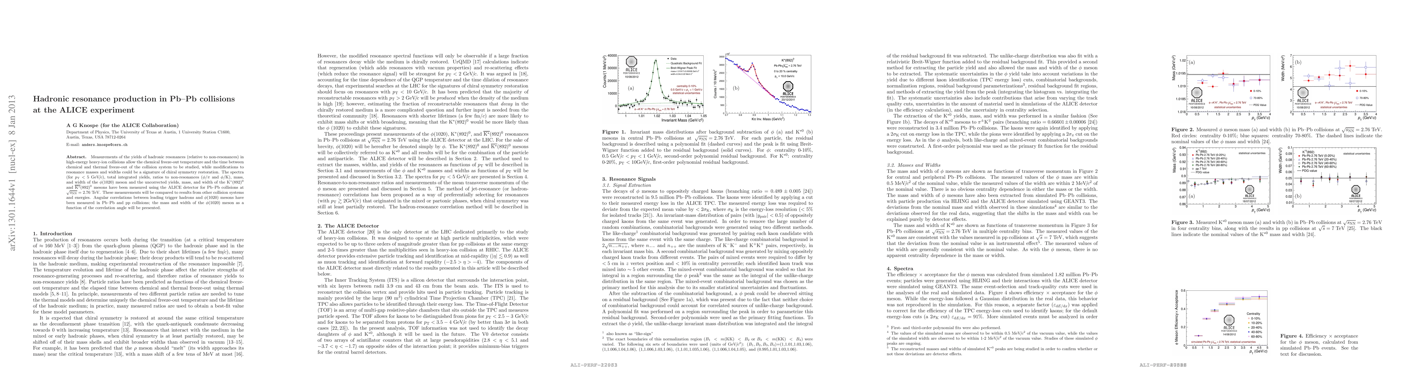Researchers at ALICE measured hadronic resonance production in Pb-Pb collisions to study chemical freeze-out temperature and potential chiral symmetry restoration effects. Their results will help compare with other collision systems and energies.