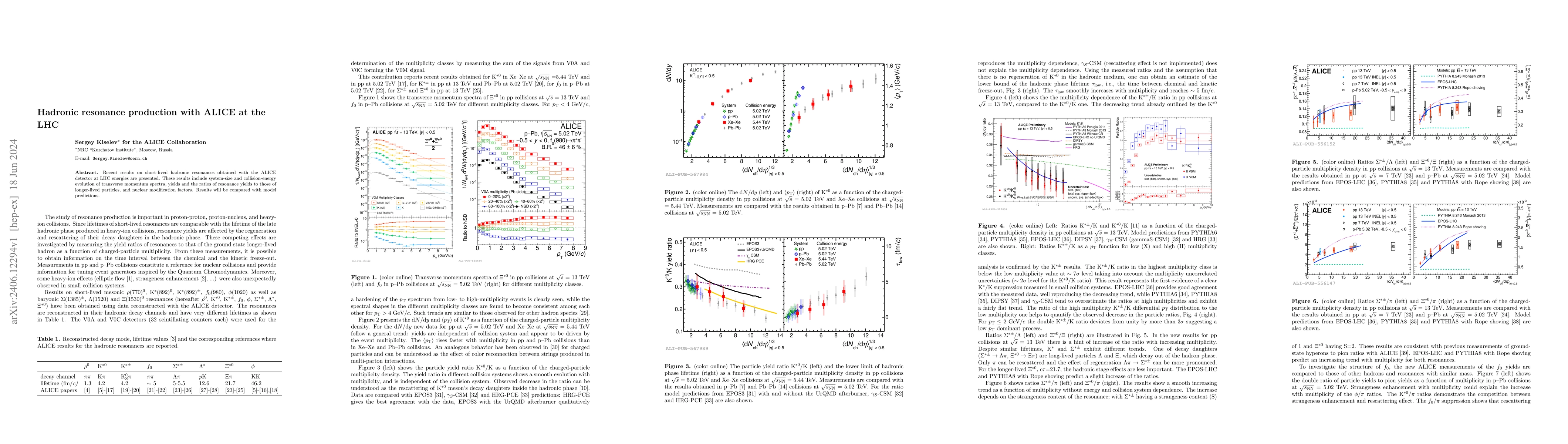 This paper presents recent findings on the production of short-lived hadronic resonances using the ALICE detector at the LHC, focusing on their transverse momentum spectra and yields across different collision energies and system sizes, and compares these results with theoretical models.