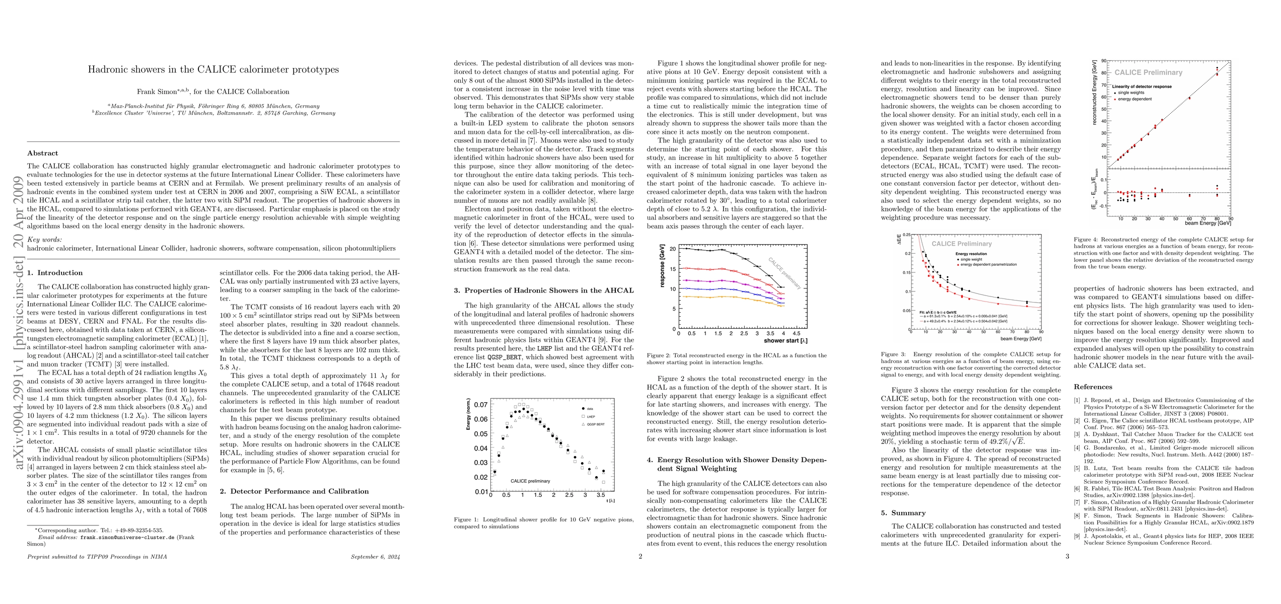 The CALICE collaboration tested granular electromagnetic and hadronic calorimeter prototypes at CERN and Fermilab, focusing on the linearity and energy resolution of hadronic showers in the hadronic calorimeter. Preliminary results from 2006-2007 show good agreement between experimental data and GEANT4 simulations.