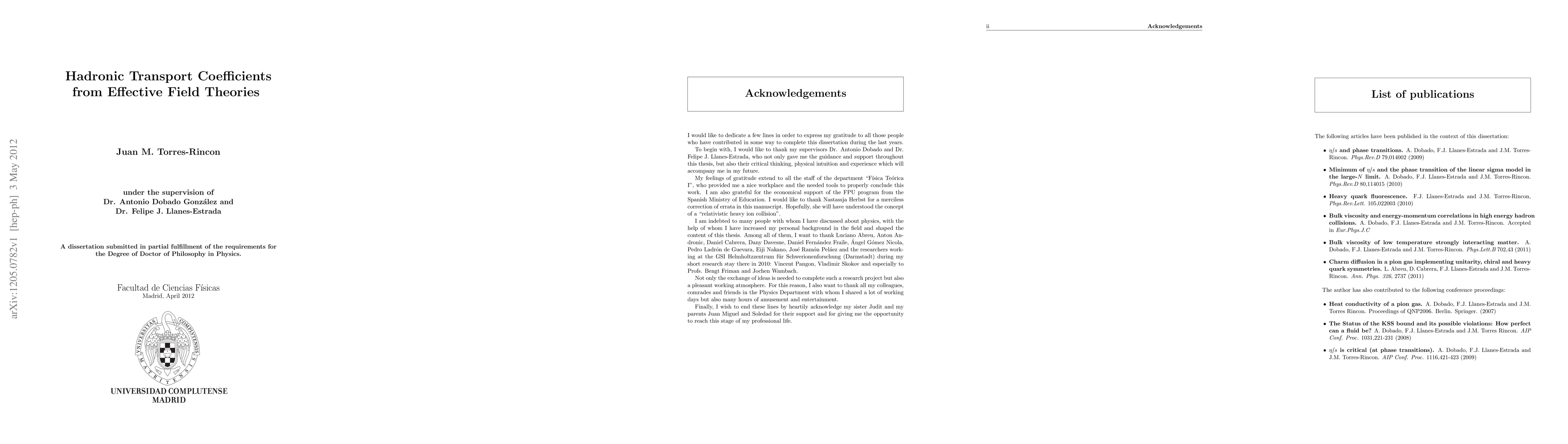 This dissertation focuses on the calculation of transport coefficients in the matter created in a relativistic heavy-ion collision after the chemical freeze-out. This matter can be well approximated by a pion gas out of equilibrium. We describe the theoretical framework to obtain the shear and bulk viscosities, the thermal and electrical conductivities and the flavor diffusion coefficients of a meson gas at low temperatures. To describe the interactions of the degrees of freedom, we use effective field theories with chiral and heavy quark symmetries. We introduce the unitarization methods in order to obtain a scattering amplitude that satisfies the unitarity condition exactly. We perform the calculation of the transport properties of the low temperature phase of quantum chromodynamics -the hadronic medium- that can be used in the hydrodynamic simulations of a relativistic heavy-ion collision and its subsequent evolution. We show that the shear viscosity over entropy density exhibits a minimum in a phase transition by studying this coefficient in atomic Argon (around the liquid-gas phase transition) and in the linear sigma model in the limit of large number of scalar fields (that presents a chiral phase transition). Finally, we provide an experimental method to estimate the bulk viscosity in relativistic heavy-ion collisions by performing correlations of the fluctuating components of the stress-energy tensor.