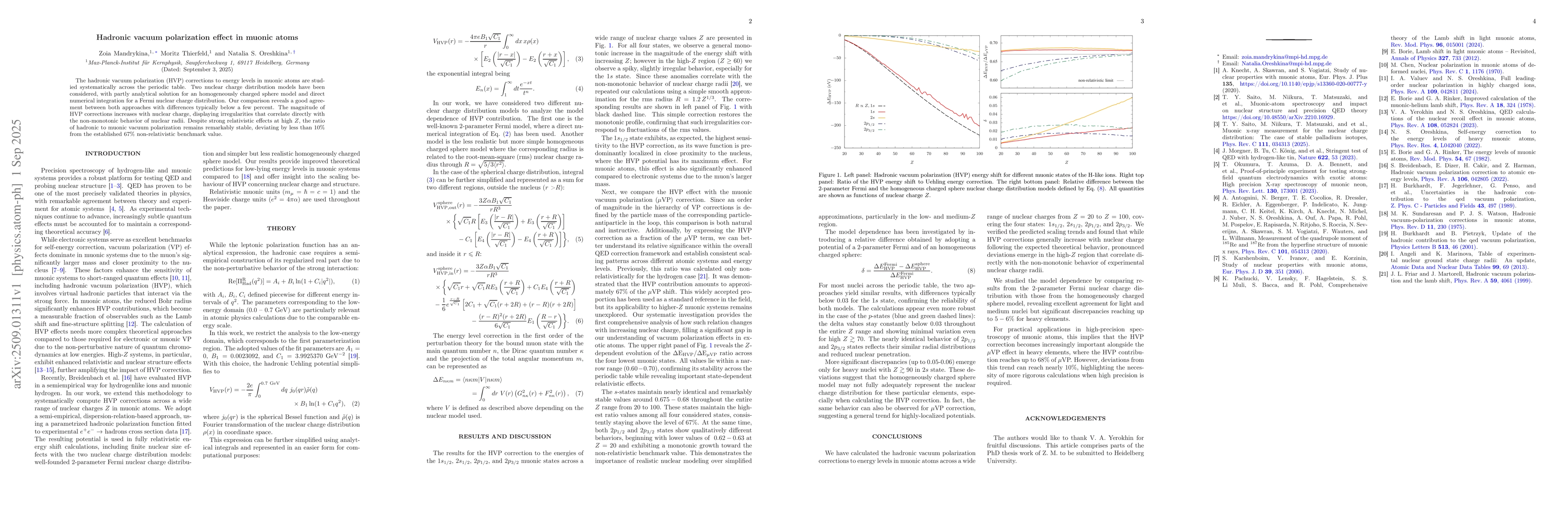 The hadronic vacuum polarization (HVP) corrections to energy levels in muonic atoms are studied systematically across the periodic table. Two nuclear charge distribution models have been considered, with partly analytical solution for an homogeneously charged sphere model and direct numerical integration for a Fermi nuclear charge distribution. Our comparison reveals a good agreement between both approaches with differences typically below a few percent. The magnitude of HVP corrections increases with nuclear charge, displaying irregularities that correlate directly with the non-monotonic behavior of nuclear radii. Despite strong relativistic effects at high $Z$, the ratio of hadronic to muonic vacuum polarization remains remarkably stable, deviating by less than $10\%$ from the established $67\%$ non-relativistic benchmark value