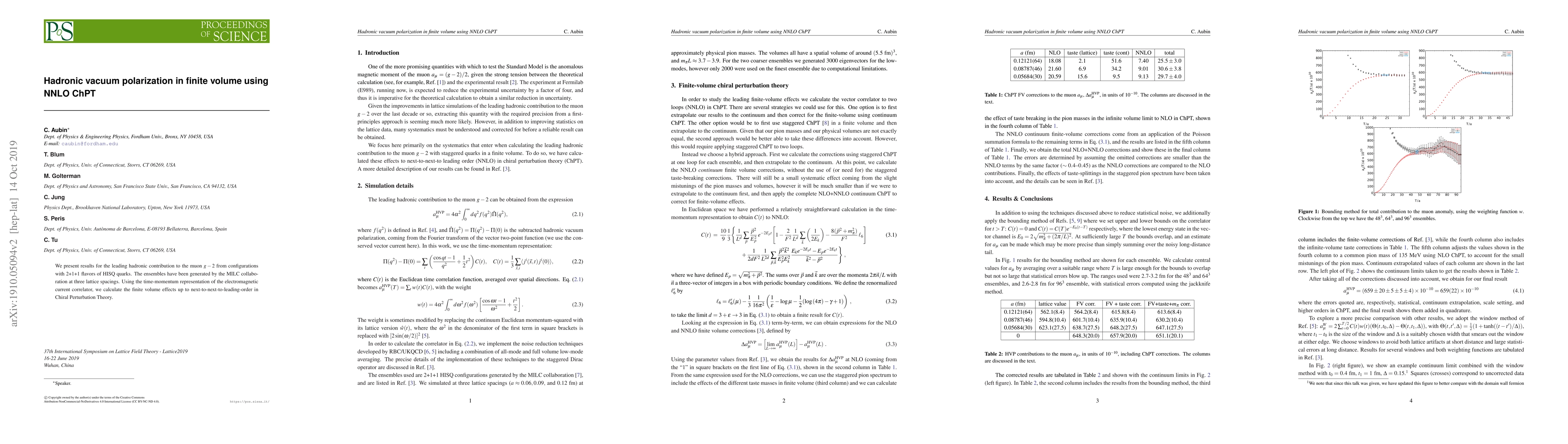 Researchers calculated the leading hadronic contribution to the muon g-2 anomaly using lattice QCD with 2+1+1 flavors of quarks, correcting for finite volume effects with Chiral Perturbation Theory.