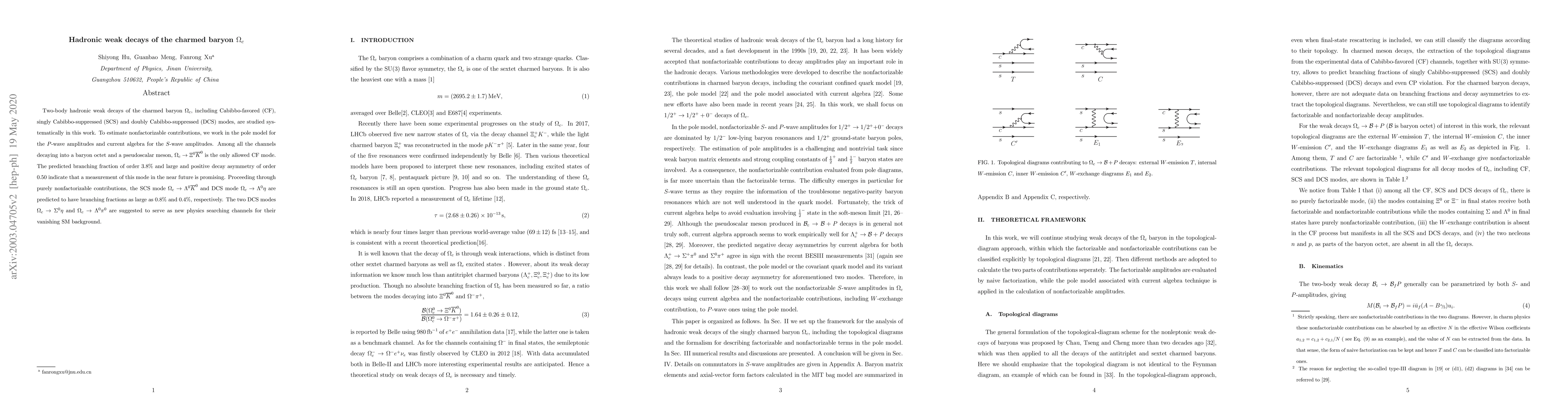 This paper systematically studies two-body hadronic weak decays of the charmed baryon $\Omega_c$, predicting significant branching fractions for Cabibbo-favored and suppressed modes, with $\Omega_c\to \Xi^0\overline{K}^0$ showing a promising branching fraction of $3.8\%$. It also highlights $\Omega_c\to\Lambda^0\overline{K}^0$ and $\Omega_c\to\Lambda^0\eta$ as potential new physics channels due to their large predicted branching fractions and low Standard Model backgrounds.