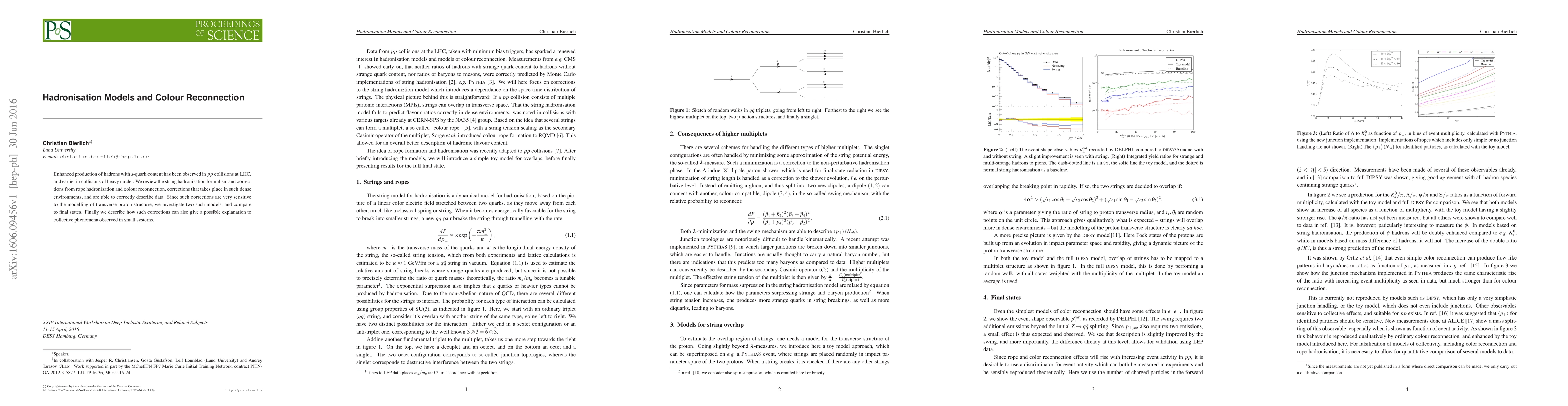 Researchers investigated hadronisation models for particle collisions at LHC, focusing on string hadronisation formalism and colour reconnection corrections that improve data description and may explain collective phenomena in small systems.