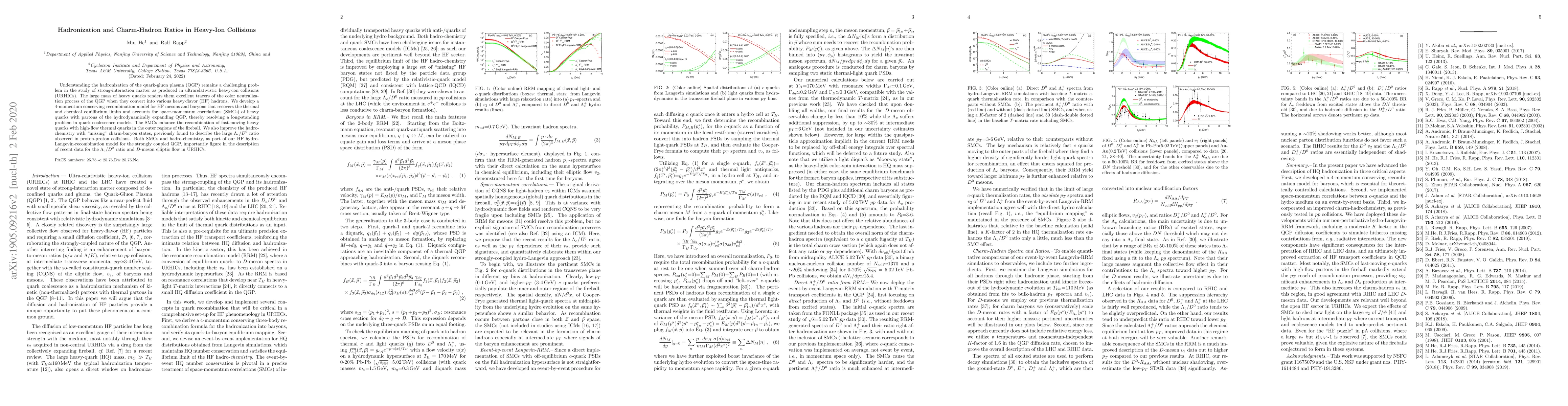 This paper develops a 4-momentum conserving recombination model to study hadronization in quark-gluon plasma, focusing on charm-hadron ratios in heavy-ion collisions. The model accounts for space-momentum correlations and improved hadro-chemistry, explaining observed $\Lambda_c/D^0$ ratios and $D$-meson elliptic flow.