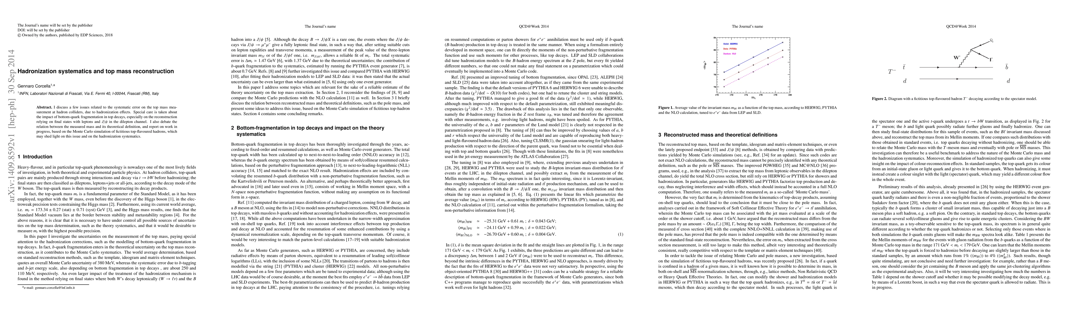 I discuss a few issues related to the systematic error on the top mass measurement at hadron colliders, due to hadronization effects. Special care is taken about the impact of bottom-quark fragmentation in top decays, especially on the reconstruction relying on final states with leptons and J/psi in the dilepton channel. I also debate the relation between the measured mass and its theoretical definition, and report on work in progress, based on the Monte Carlo simulation of fictitious top-flavoured hadrons, which may shed light on this issue and on the hadronization systematics.