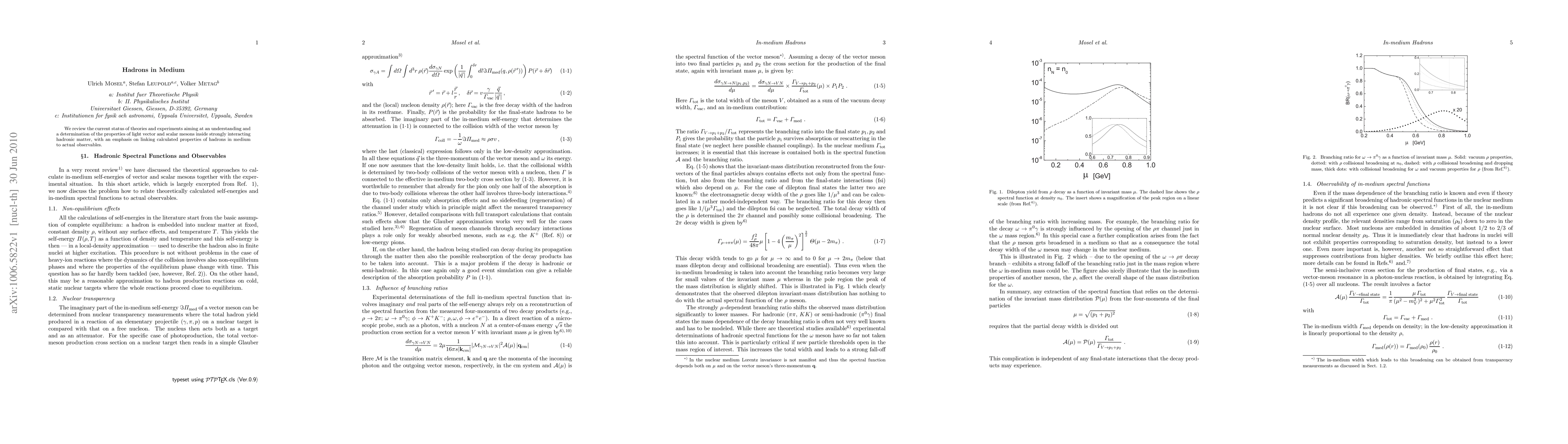 This paper reviews current theoretical and experimental efforts to understand the properties of light vector and scalar mesons within hadronic matter, focusing on how these properties relate to measurable outcomes. It emphasizes linking theoretical calculations of hadron behavior in medium to observable phenomena.