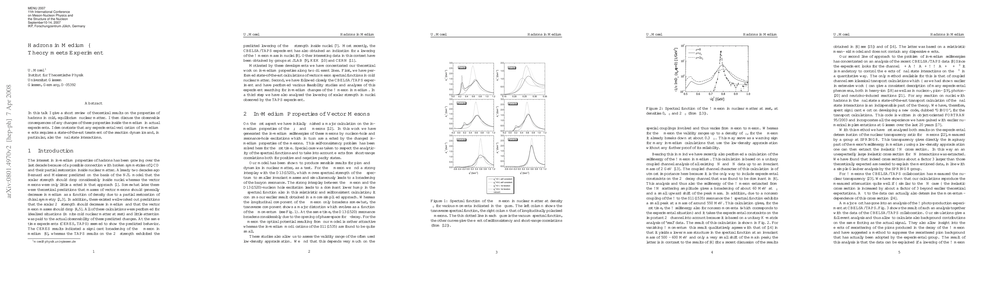 In this talk I give a short review of theoretical results on the properties of hadrons in cold, equilibrium nuclear matter. I then discuss the observable consequences of any changes of these properties inside the medium in actual experiments. I demonstrate that any experimental verification of in-medium effects requires a state-of-the-art treatment of the reaction dynamics and, in particular, also the final state interactions.