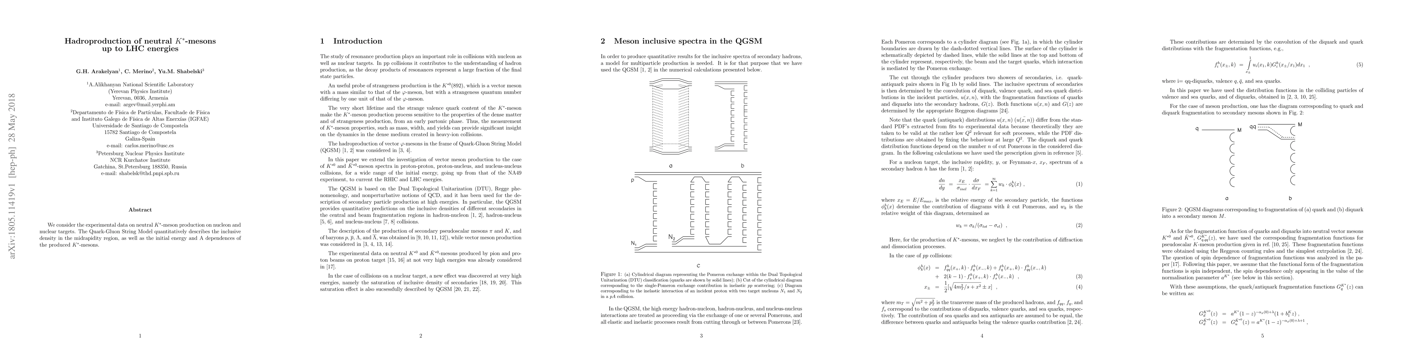 We consider the experimental data on neutral Kstar-meson production on nucleon and nuclear targets. The Quark-Gluon String Model quantitatively describes the inclusive density in the midrapidity region, as well as the initial energy and A dependences of the produced Kstar-mesons.