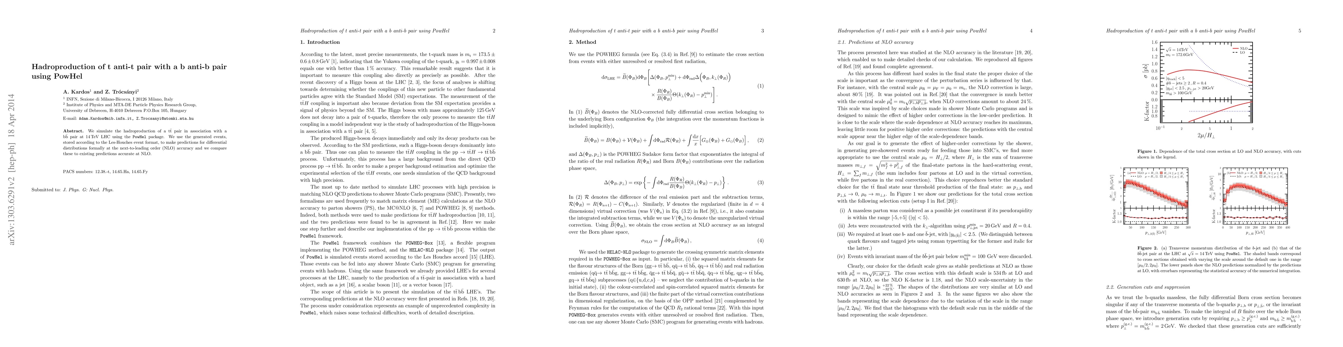 We simulate the hadroproduction of a top-antitop pair in association with a bottom-antibottom pair at 14 TeV LHC using the PowHel package. We use the generated events, stored according to the Les-Houches event format, to make predictions for differential distributions formally at the next-to-leading order (NLO) accuracy and we compare these to existing predictions accurate at NLO.