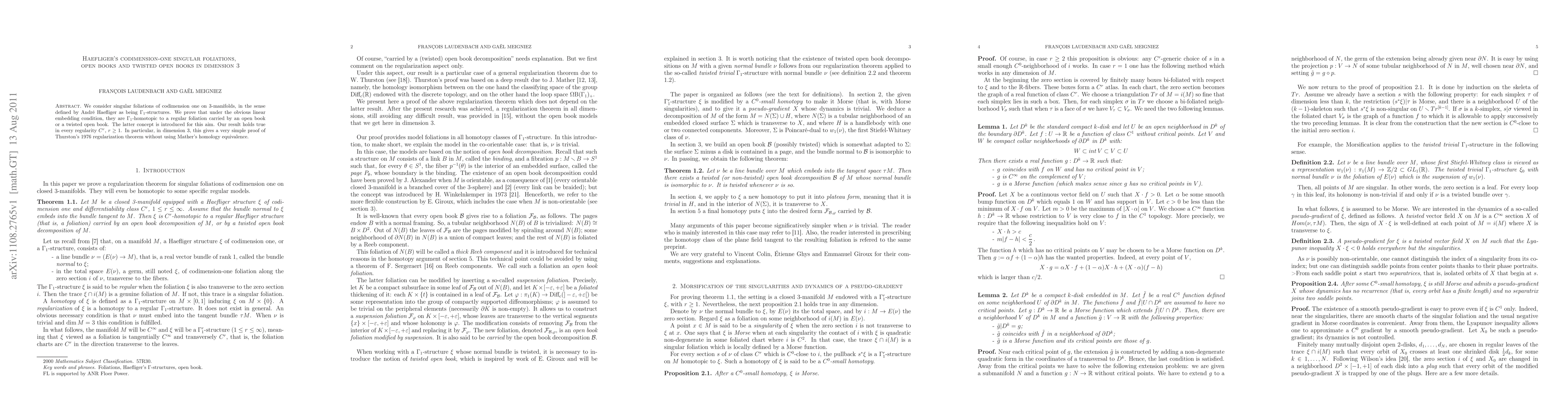 This paper proves that codimension-one singular foliations on 3-manifolds, as defined by Haefliger, are Gamma_1-homotopic to regular foliations supported by open or twisted open books. The result provides a straightforward proof of Thurston's 1976 regularization theorem in dimension 3 without relying on Mather's homology equivalence.