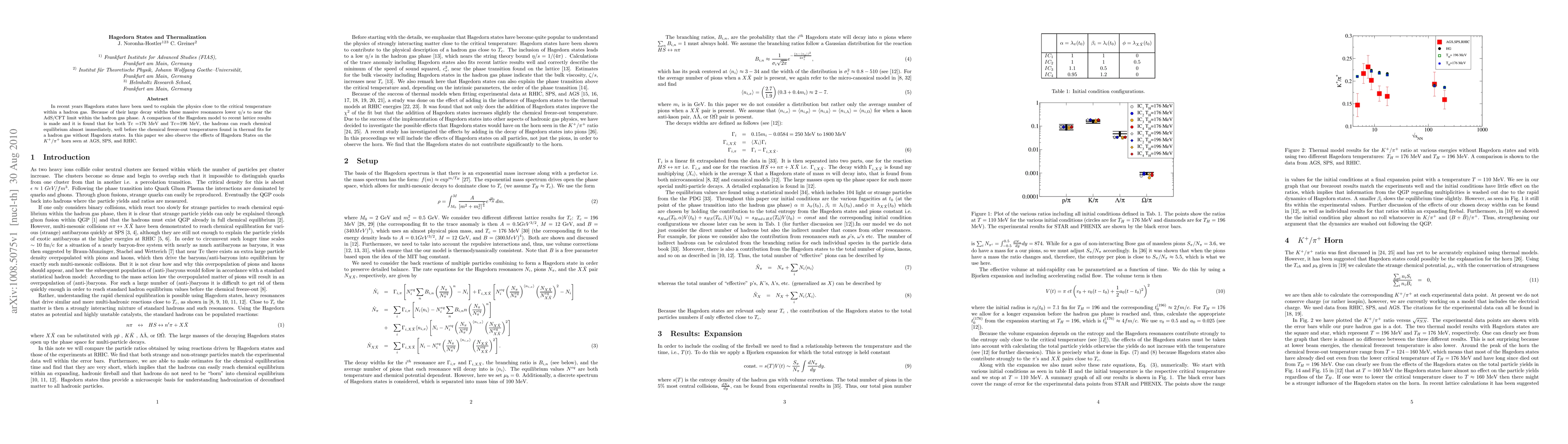 In recent years Hagedorn states have been used to explain the physics close to the critical temperature within a hadron gas. Because of their large decay widths these massive resonances lower $\eta/s$ to near the AdS/CFT limit within the hadron gas phase. A comparison of the Hagedorn model to recent lattice results is made and it is found that for both Tc =176 MeV and Tc=196 MeV, the hadrons can reach chemical equilibrium almost immediately, well before the chemical freeze-out temperatures found in thermal fits for a hadron gas without Hagedorn states. In this paper we also observe the effects of Hagedorn States on the $K^+/\pi^+$ horn seen at AGS, SPS, and RHIC.