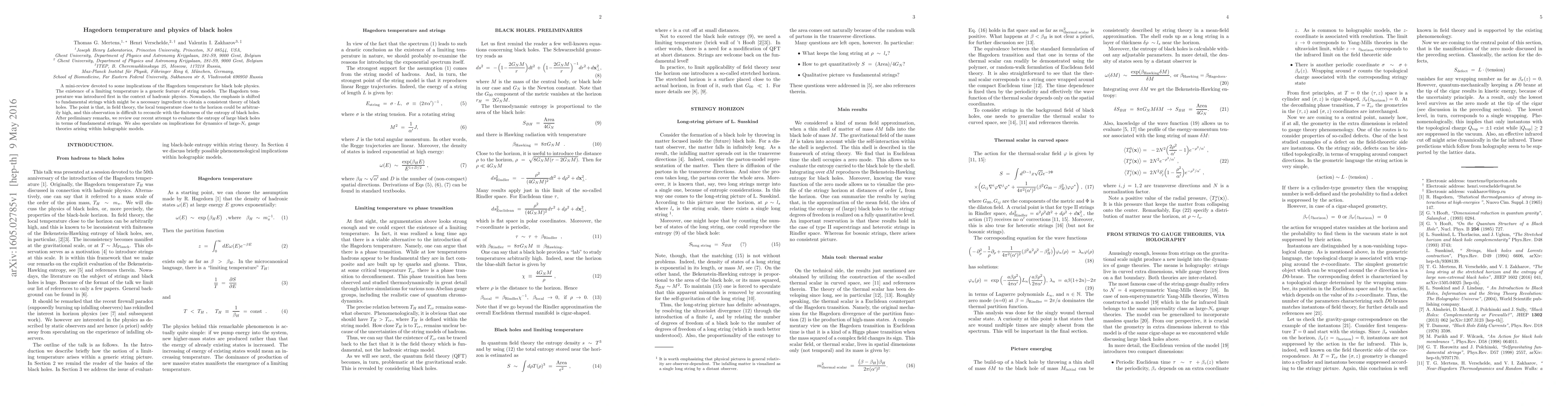 This paper reviews the implications of the Hagedorn temperature in black hole physics, emphasizing its role in reconciling the high local temperature near the horizon with the finiteness of black hole entropy. It explores the use of fundamental strings to evaluate black hole entropy and discusses potential connections to large-N gauge theories in holographic models.