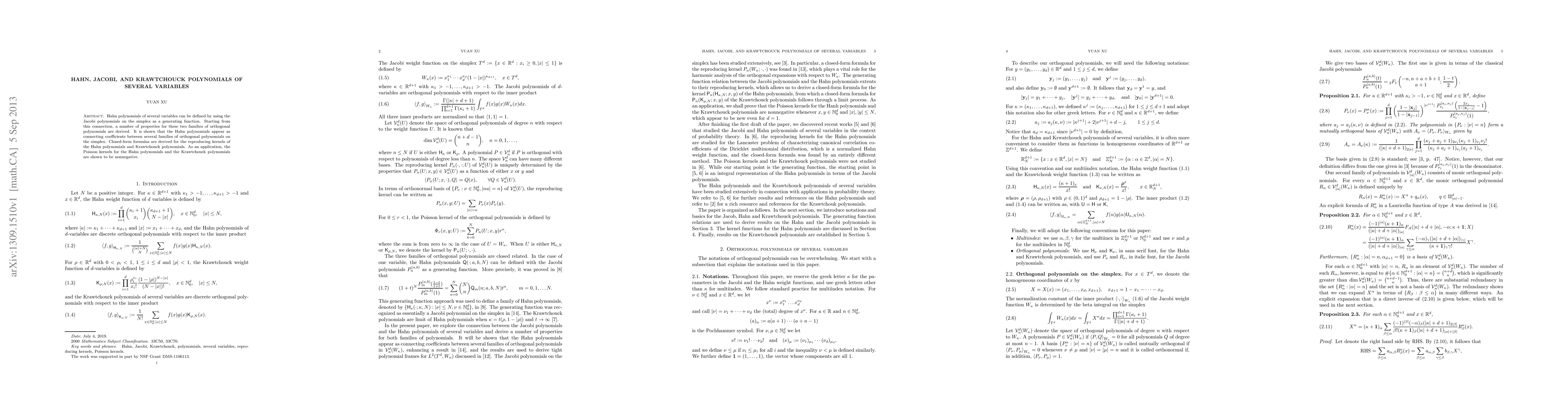 This paper explores the relationship between Hahn polynomials of several variables and Jacobi polynomials on the simplex, deriving properties and connections between these orthogonal polynomial families. It also provides closed-form formulas for the reproducing and Poisson kernels of Hahn and Krawtchouck polynomials, demonstrating their nonnegativity.