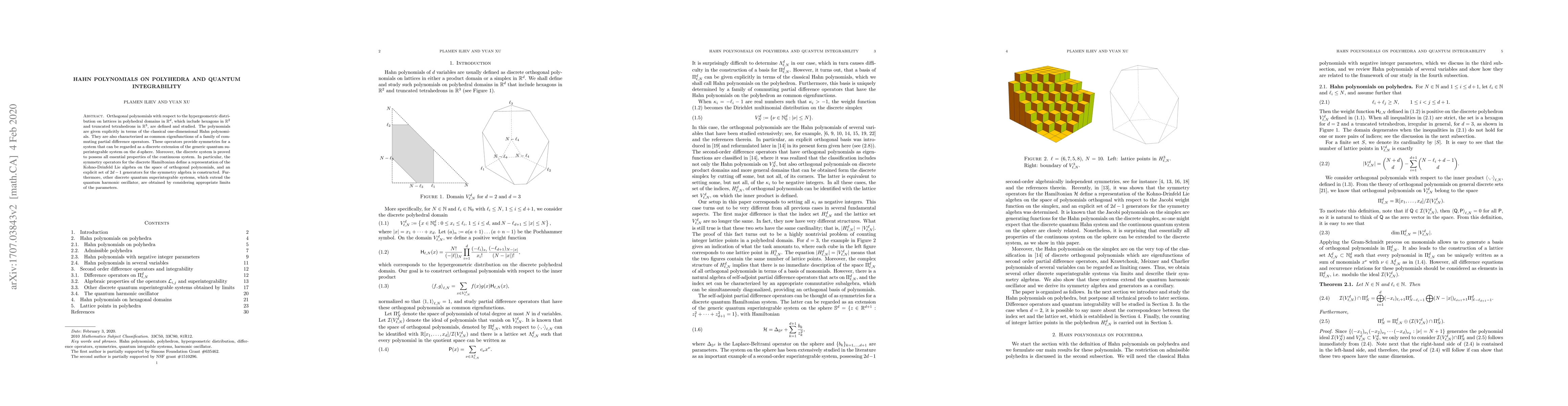 Researchers define orthogonal polynomials on polyhedral domains in R^d and show they share properties with a continuous quantum superintegrable system, including symmetries and generators for the symmetry algebra.