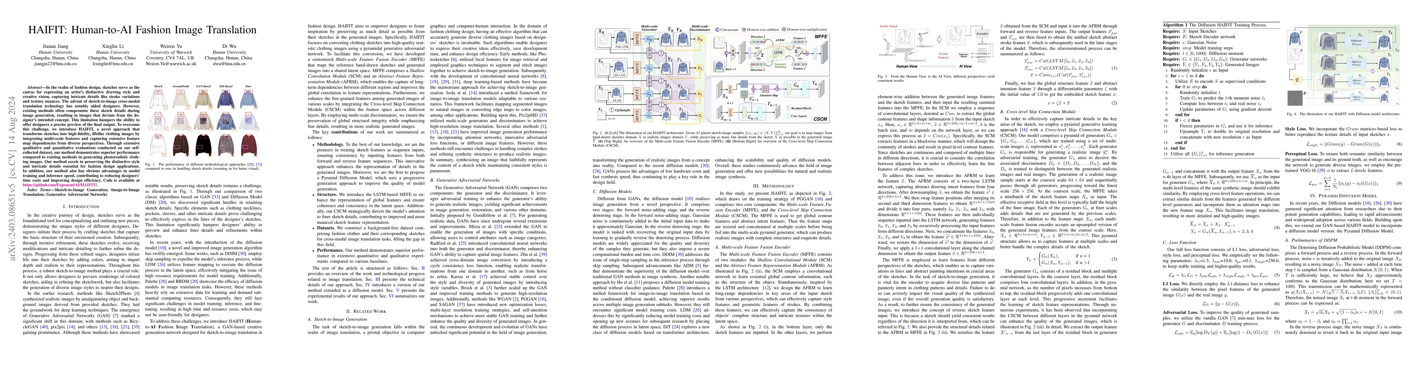 HAIFIT presents a novel AI method for transforming fashion sketches into high-fidelity clothing images while preserving intricate design details and artist styles. The approach outperforms existing techniques through multi-scale feature integration and extensive feature map dependencies.