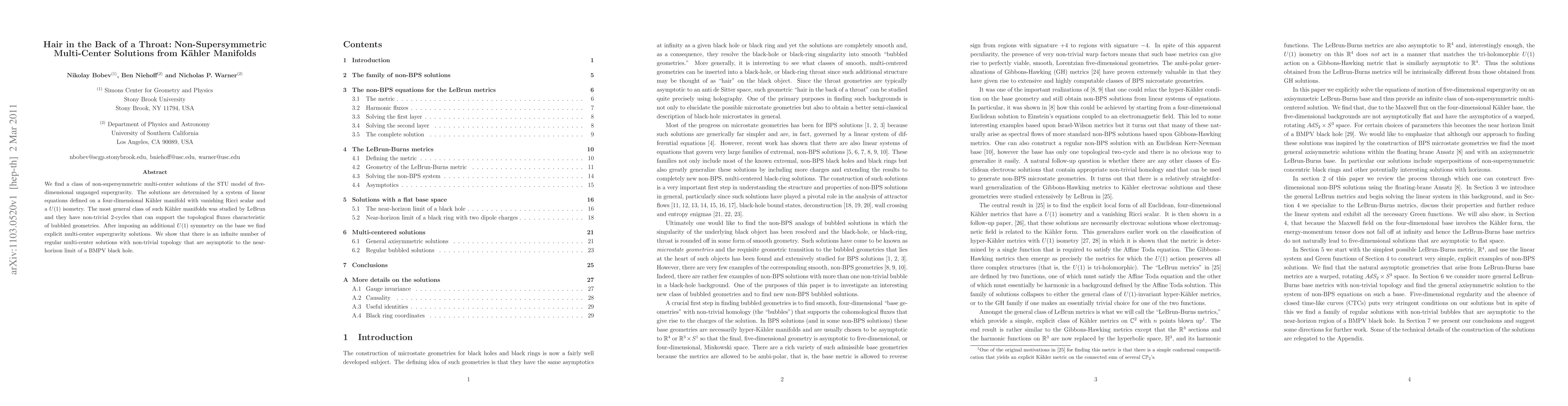 We find a class of non-supersymmetric multi-center solutions of the STU model of five-dimensional ungauged supergravity. The solutions are determined by a system of linear equations defined on a four-dimensional K\"ahler manifold with vanishing Ricci scalar and a U(1) isometry. The most general class of such K\"ahler manifolds was studied by LeBrun and they have non-trivial 2-cycles that can support the topological fluxes characteristic of bubbled geometries. After imposing an additional U(1) symmetry on the base we find explicit multi-center supergravity solutions. We show that there is an infinite number of regular multi-center solutions with non-trivial topology that are asymptotic to the near-horizon limit of a BMPV black hole.