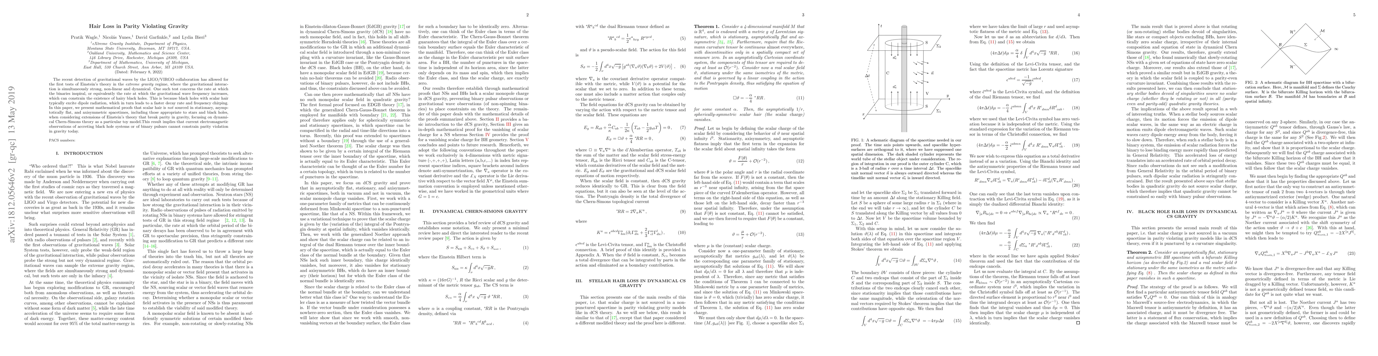 The recent detection of gravitational waves by the LIGO/VIRGO collaboration has allowed for the first tests of Einstein's theory in the extreme gravity regime, where the gravitational interaction is simultaneously strong, non-linear and dynamical. One such test concerns the rate at which the binaries inspiral, or equivalently the rate at which the gravitational wave frequency increases, which can constrain the existence of hairy black holes. This is because black holes with scalar hair typically excite dipole radiation, which in turn leads to a faster decay rate and frequency chirping. In this paper, we present a mathematical proof that scalar hair is not sourced in vacuum, spherically symmetric spacetimes when considering extensions of Einstein's theory that break parity in gravity, focusing on dynamical Chern-Simons theory as a particular toy model. This result implies that the observational confirmation of the baldness of black holes cannot be used to constrain parity violation in gravity, unless the black holes observed are also spinning.