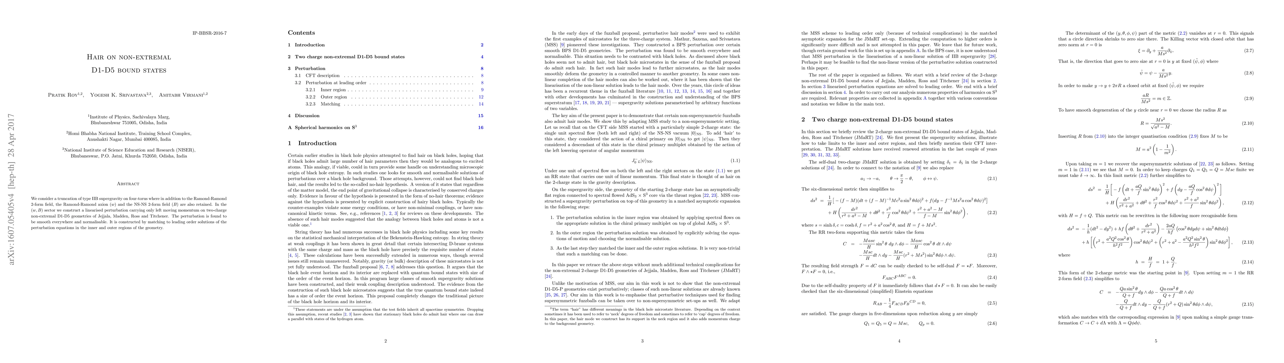 We consider a truncation of type IIB supergravity on four-torus where in addition to the Ramond-Ramond 2-form field, the Ramond-Ramond axion (w) and the NS-NS 2-form field (B) are also retained. In the (w, B) sector we construct a linearised perturbation carrying only left moving momentum on two-charge non-extremal D1-D5 geometries of Jejjala, Madden, Ross and Titchener. The perturbation is found to be smooth everywhere and normalizable. It is constructed by matching to leading order solutions of the perturbation equations in the inner and outer regions of the geometry.