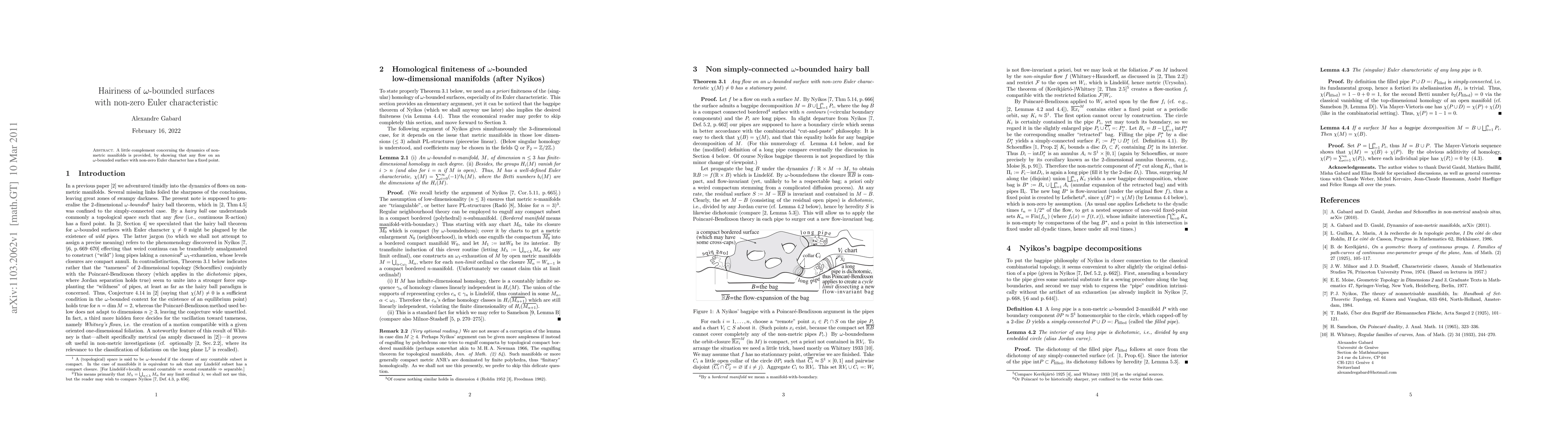 A little complement concerning the dynamics of non-metric manifolds is provided, by showing that any flow on an $\omega$-bounded surface with non-zero Euler character has a fixed point.