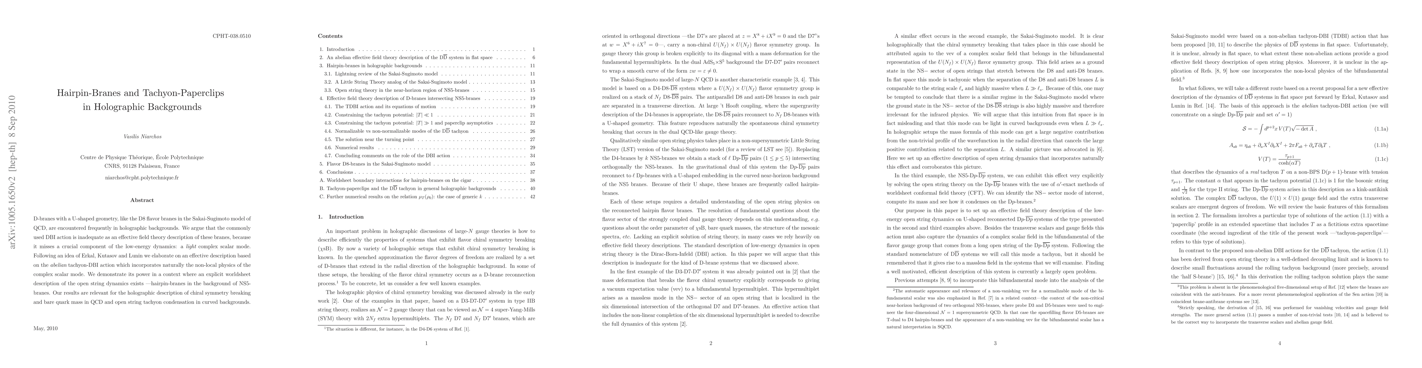 D-branes with a U-shaped geometry, like the D8 flavor branes in the Sakai-Sugimoto model of QCD, are encountered frequently in holographic backgrounds. We argue that the commonly used DBI action is inadequate as an effective field theory description of these branes, because it misses a crucial component of the low-energy dynamics: a light complex scalar mode. Following an idea of Erkal, Kutasov and Lunin we elaborate on an effective description based on the abelian tachyon-DBI action which incorporates naturally the non-local physics of the complex scalar mode. We demonstrate its power in a context where an explicit worldsheet description of the open string dynamics exists --hairpin-branes in the background of NS5-branes. Our results are relevant for the holographic description of chiral symmetry breaking and bare quark mass in QCD and open string tachyon condensation in curved backgrounds.