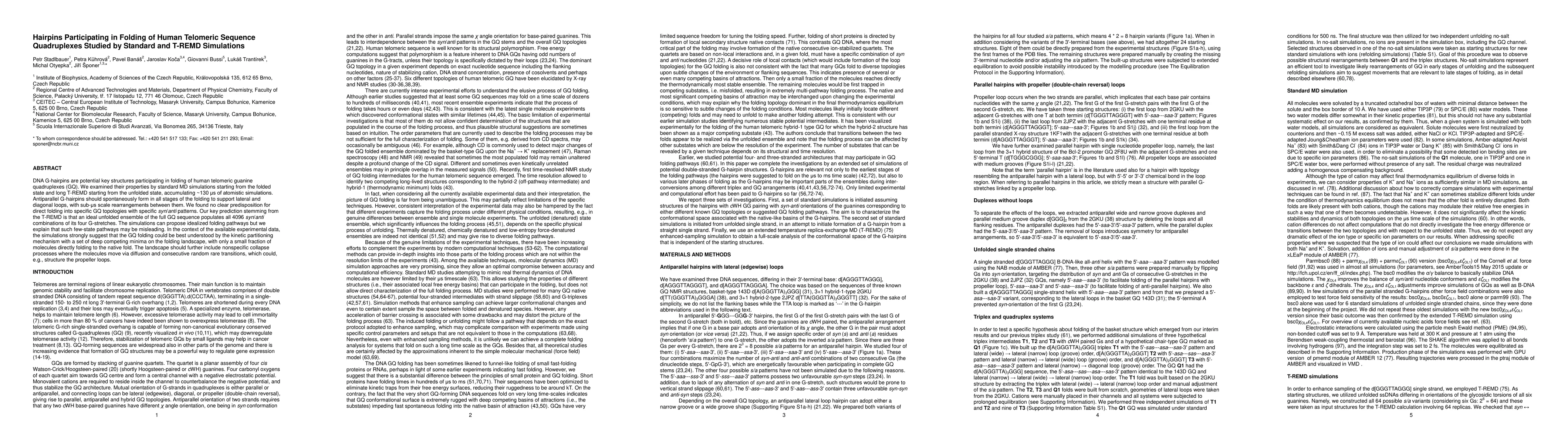 This paper investigates the folding mechanisms of human telomeric guanine quadruplexes (GQ) using MD and T-REMD simulations, revealing that G-hairpins are key structures that support the formation of GQ through lateral and diagonal loops. The study suggests that GQ folding is best understood through a kinetic partitioning mechanism involving deep competing minima and nonspecific collapse processes rather than direct folding into specific topologies.
