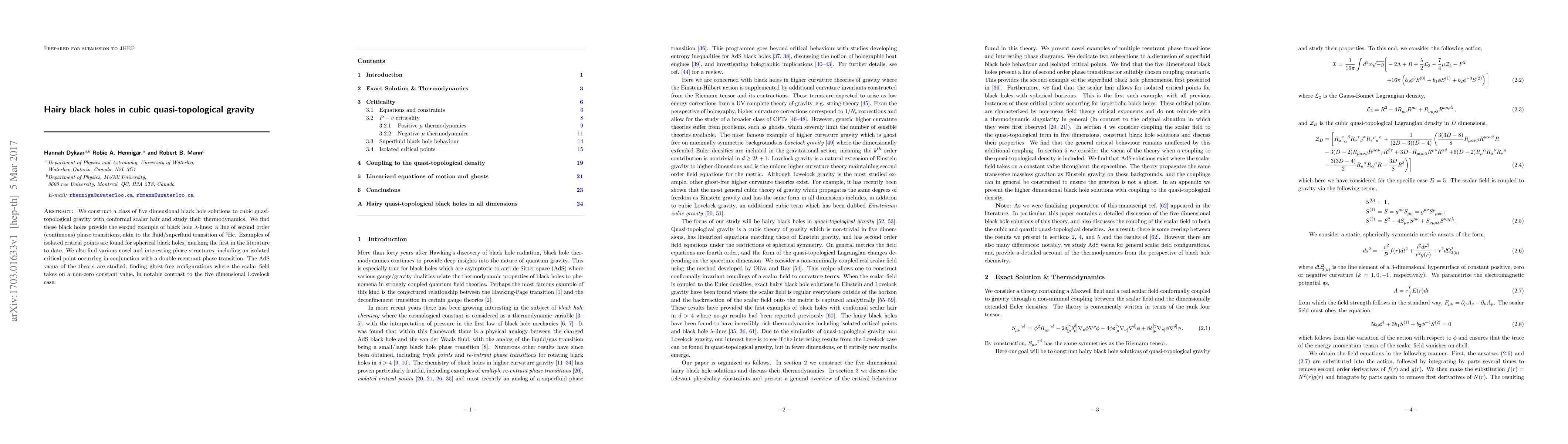 We construct a class of five dimensional black hole solutions to cubic quasi-topological gravity with conformal scalar hair and study their thermodynamics. We find these black holes provide the second example of black hole $\lambda$-lines: a line of second order (continuous) phase transitions, akin to the fluid/superfluid transition of $^4$He. Examples of isolated critical points are found for spherical black holes, marking the first in the literature to date. We also find various novel and interesting phase structures, including an isolated critical point occurring in conjunction with a double reentrant phase transition. The AdS vacua of the theory are studied, finding ghost-free configurations where the scalar field takes on a non-zero constant value, in notable contrast to the five dimensional Lovelock case.
