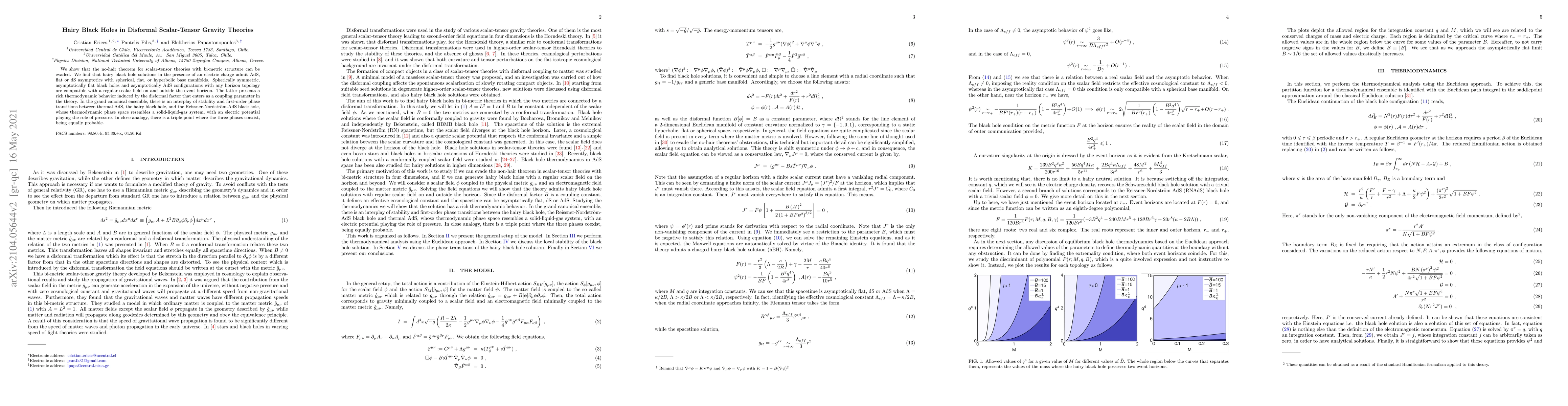 This paper demonstrates that scalar-tensor theories with bi-metric structure can produce hairy black holes, challenging the no-hair theorem. These solutions exhibit diverse asymptotic behaviors and thermodynamic phases, with the disformal factor influencing stability and phase transitions.