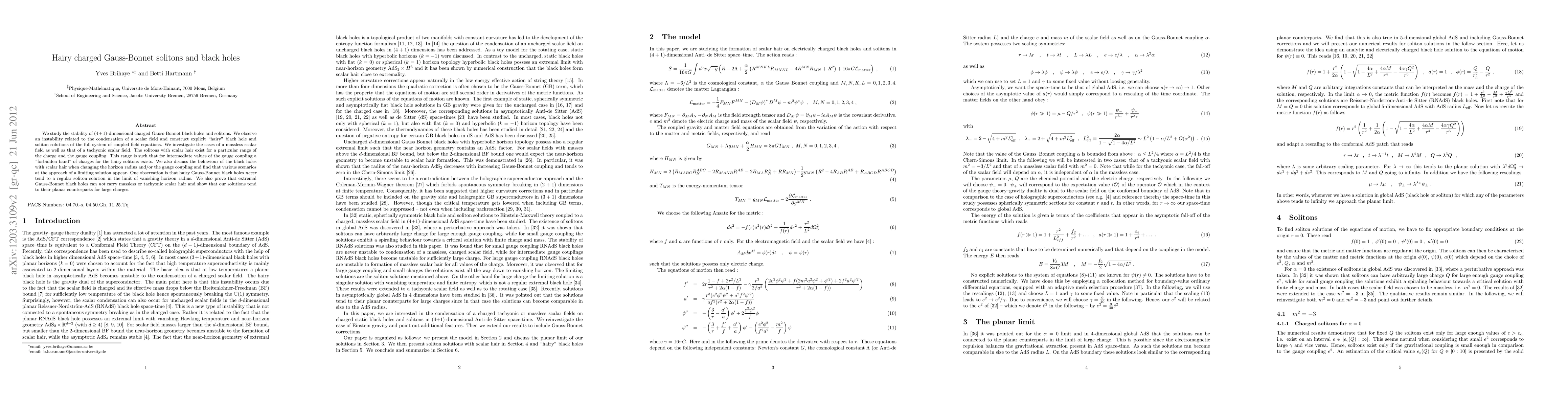 This research examines the stability and properties of (4+1)-dimensional charged Gauss-Bonnet black holes and solitons with scalar hair, finding an instability due to scalar field condensation. It identifies a "forbidden band" of charges for hairy solitons and shows that hairy black holes do not transition to regular soliton solutions as the horizon radius shrinks.