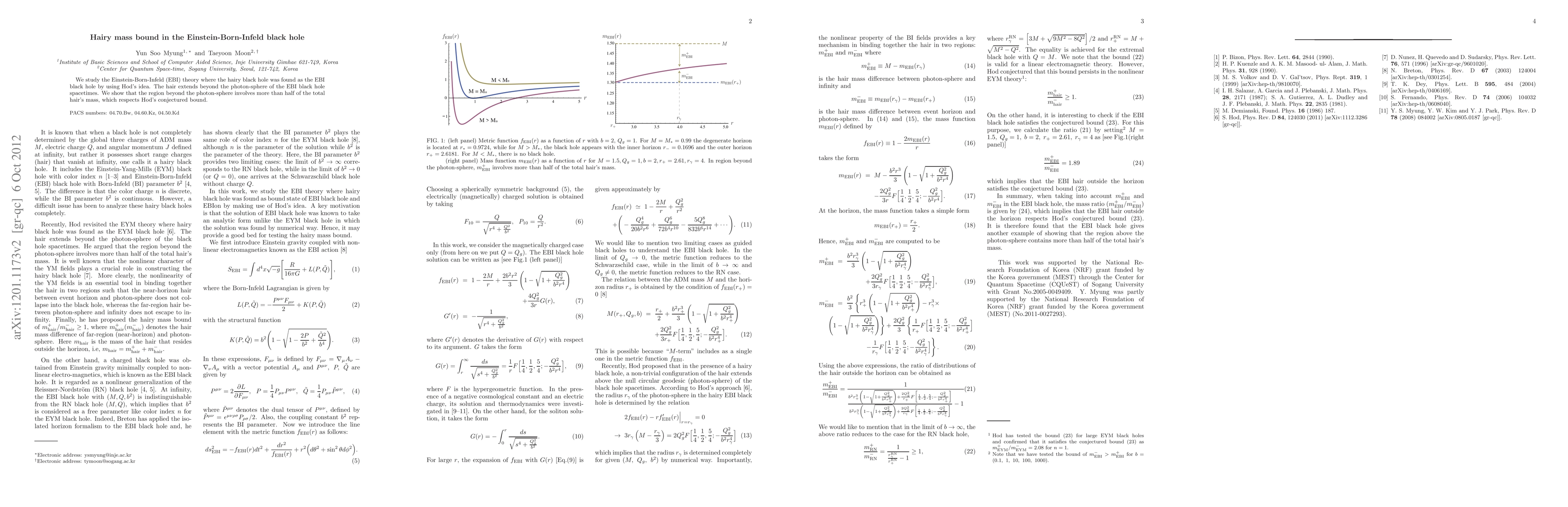 This paper investigates hairy black holes in the Einstein-Born-Infeld (EBI) theory, demonstrating that the mass of the hair extends beyond the photon-sphere, supporting Hod's conjectured bound on the mass distribution. The findings highlight the significant mass contained in the region beyond the photon-sphere.
