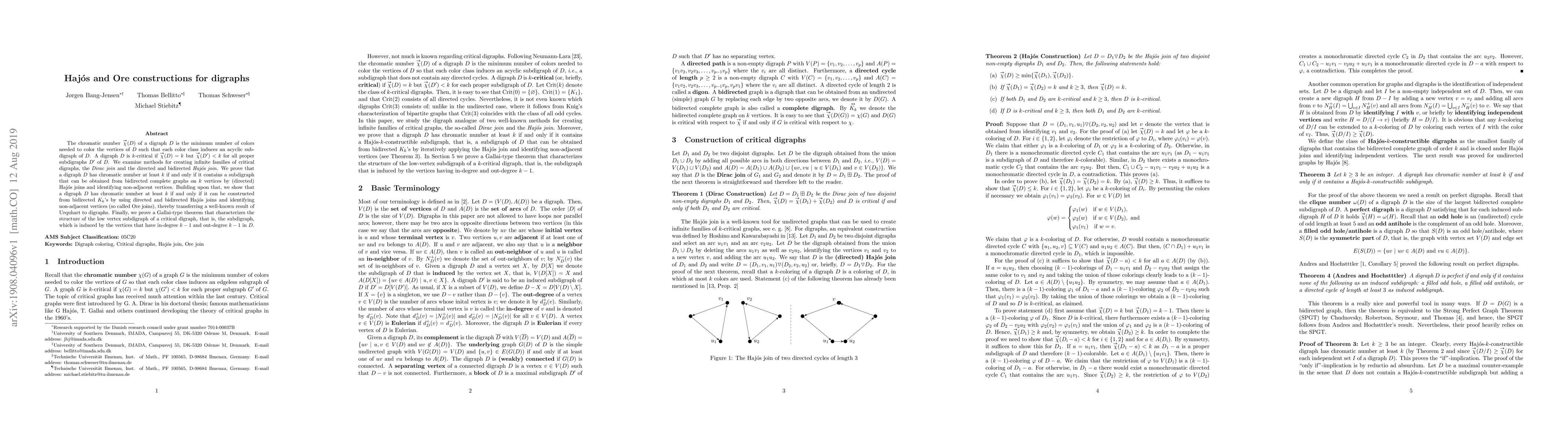 The paper establishes a connection between Hajós and Ore constructions and the chromatic number of digraphs, extending classical results from undirected graphs to digraphs.