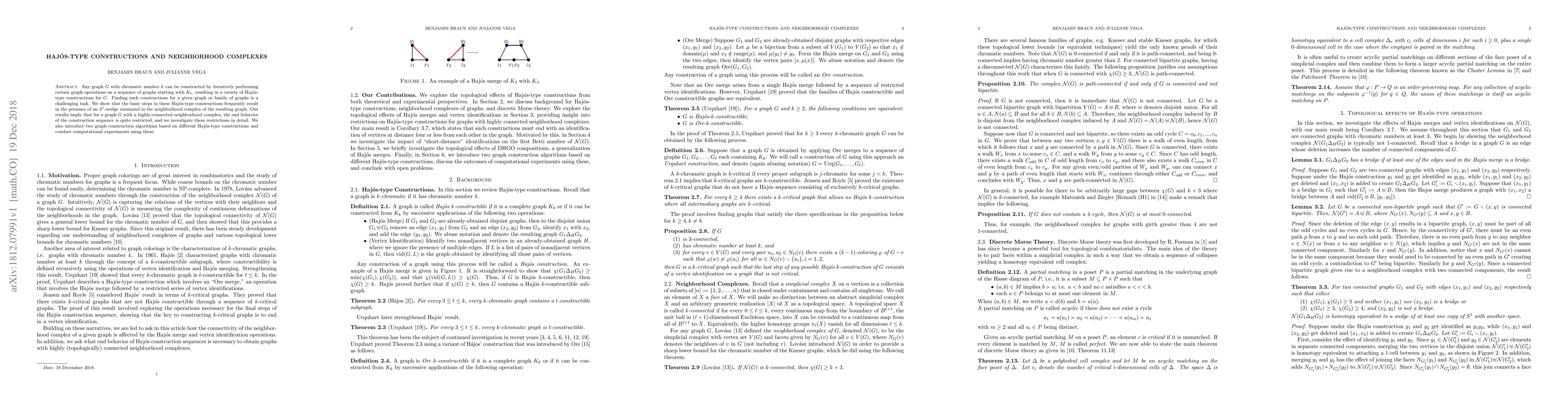 Any graph $G$ with chromatic number $k$ can be constructed by iteratively performing certain graph operations on a sequence of graphs starting with $K_k$, resulting in a variety of Haj\'os-type constructions for $G$. Finding such constructions for a given graph or family of graphs is a challenging task. We show that the basic steps in these Haj\'os-type constructions frequently result in the presence of an $S^1$-wedge summand in the neighborhood complex of the resulting graph. Our results imply that for a graph $G$ with a highly-connected neighborhood complex, the end behavior of the construction sequence is quite restricted, and we investigate these restrictions in detail. We also introduce two graph construction algorithms based on different Haj\'os-type constructions and conduct computational experiments using these.
