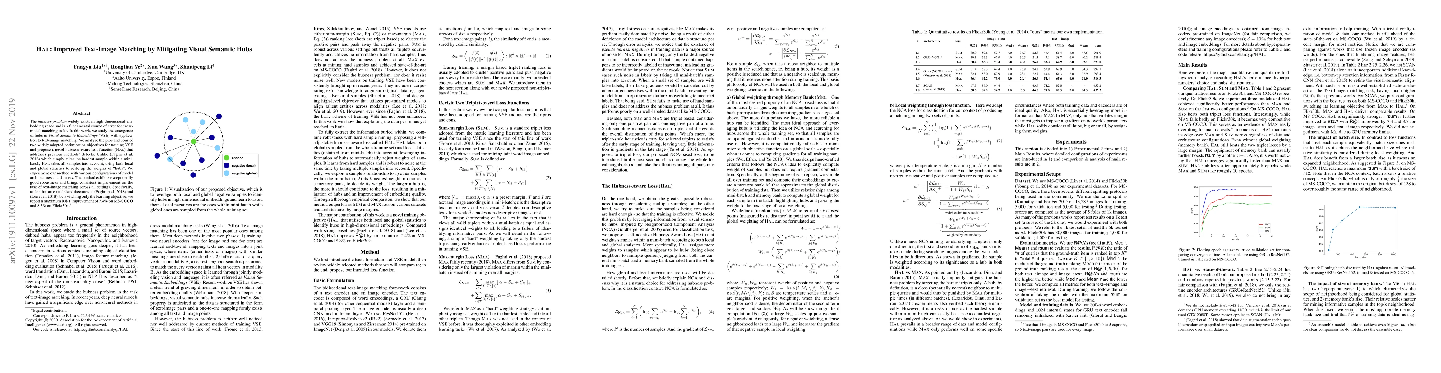 This paper proposes a hubness-aware loss function (HAL) to improve text-image matching by addressing the hubness problem in Visual Semantic Embeddings. HAL considers all samples and uses local and global statistics to enhance the weights of "hubs," outperforming previous methods and achieving significant improvements in matching accuracy.