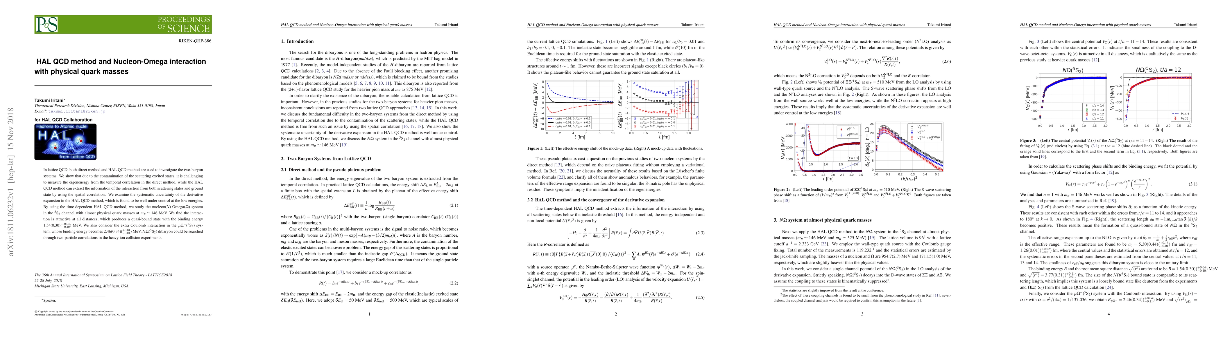This paper employs the HAL QCD method in lattice QCD to study the nucleon-Omega interaction, finding an attractive interaction producing a quasi-bound state with a binding energy of 1.54 MeV. The method effectively handles scattering states and ground state interactions, showing systematic uncertainties under control at low energies.
