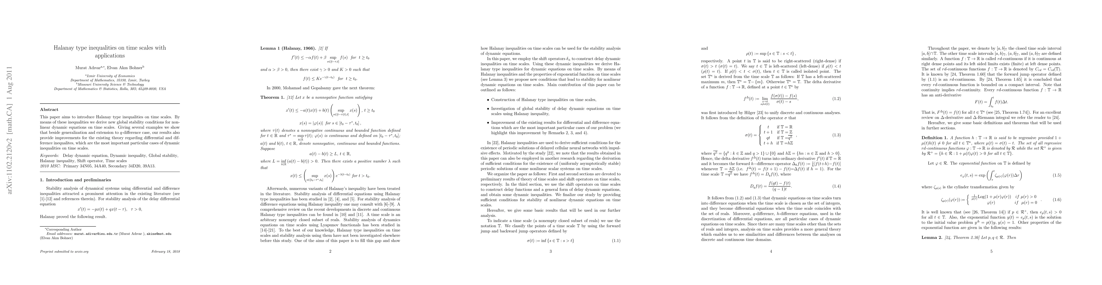 This paper introduces Halanay type inequalities on time scales and uses them to derive new global stability conditions for nonlinear dynamic equations. It extends these results to the q-difference case and improves existing theory for differential and difference inequalities.