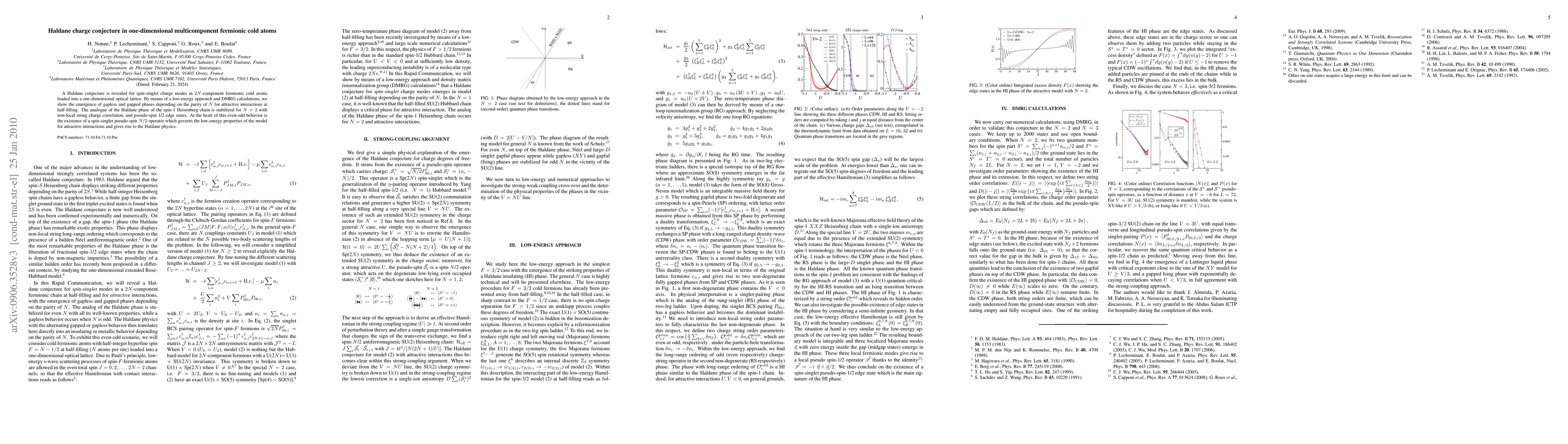 The research reveals a Haldane conjecture for spin-singlet charge modes in 2N-component fermionic cold atoms in a one-dimensional optical lattice, showing gapless and gapped phases based on the parity of N, with pseudo-spin 1/2 edge states and non-local string charge correlation for N=2.