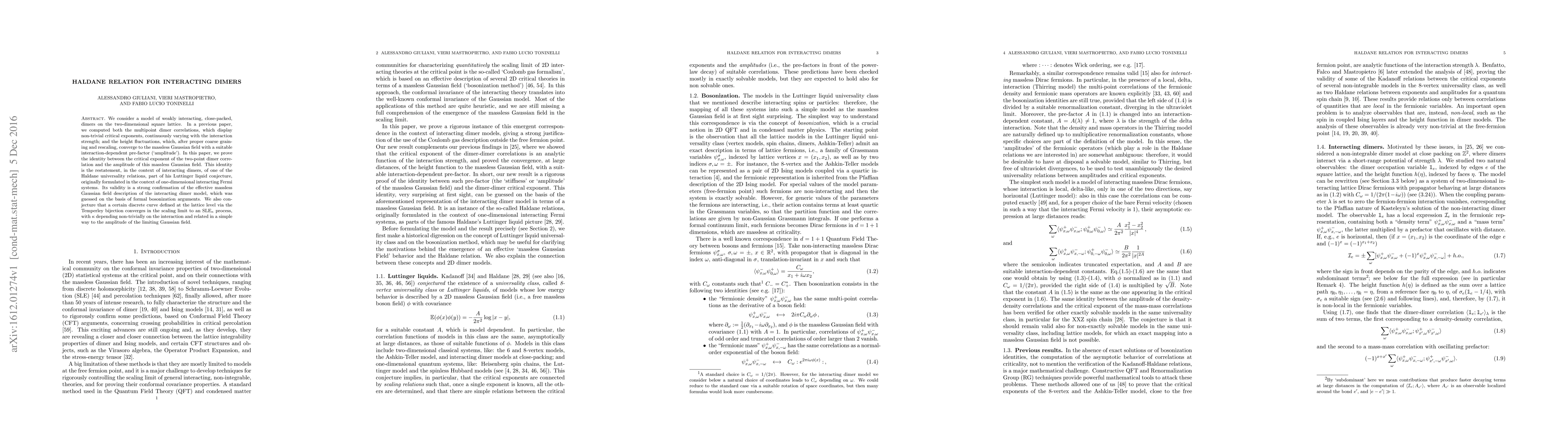 We consider a model of weakly interacting, close-packed, dimers on the two-dimensional square lattice. In a previous paper, we computed both the multipoint dimer correlations, which display non-trivial critical exponents, continuously varying with the interaction strength; and the height fluctuations, which, after proper coarse graining and rescaling, converge to the massless Gaussian field with a suitable interaction-dependent pre-factor (`amplitude'). In this paper, we prove the identity between the critical exponent of the two-point dimer correlation and the amplitude of this massless Gaussian field. This identity is the restatement, in the context of interacting dimers, of one of the Haldane universality relations, part of his Luttinger liquid conjecture, originally formulated in the context of one-dimensional interacting Fermi systems. Its validity is a strong confirmation of the effective massless Gaussian field description of the interacting dimer model, which was guessed on the basis of formal bosonization arguments. We also conjecture that a certain discrete curve defined at the lattice level via the Temperley bijection converges in the scaling limit to an SLE$_\kappa$ process, with $\kappa$ depending non-trivially on the interaction and related in a simple way to the amplitude of the limiting Gaussian field.