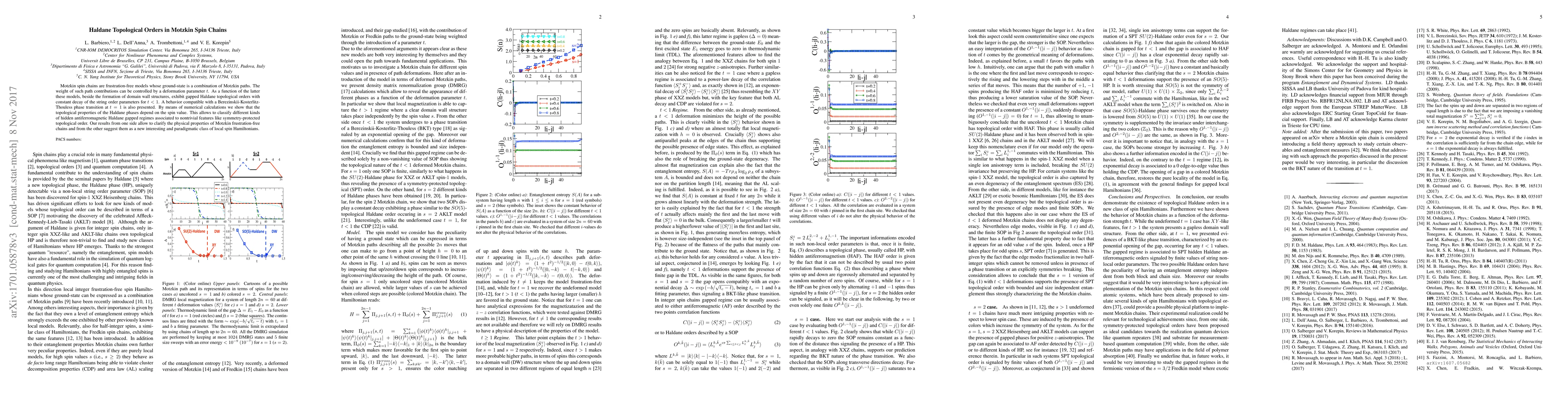 This paper explores the topological properties of Motzkin spin chains, revealing a Berezinskii-Kosterlitz-Thouless phase transition and Haldane topological orders for specific deformation parameters. Numerical calculations classify various hidden antiferromagnetic Haldane regimes, highlighting their potential as a new class of local spin Hamiltonians.