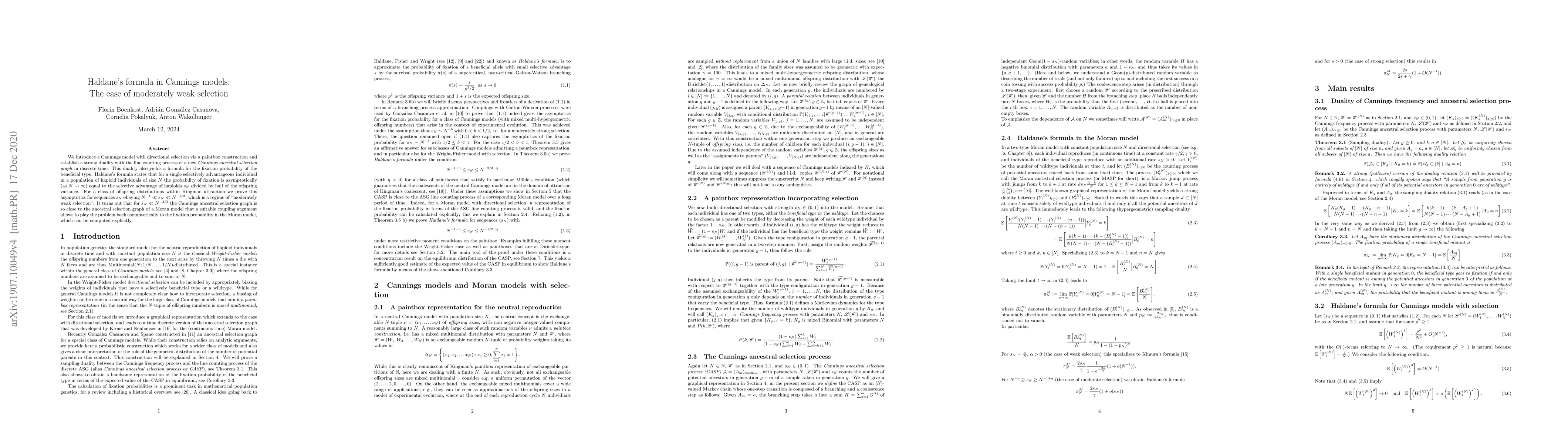 This study proves Haldane's formula for fixation probability in a moderately weak selection scenario using Cannings models and a new ancestral selection graph, providing an asymptotic solution to the problem.