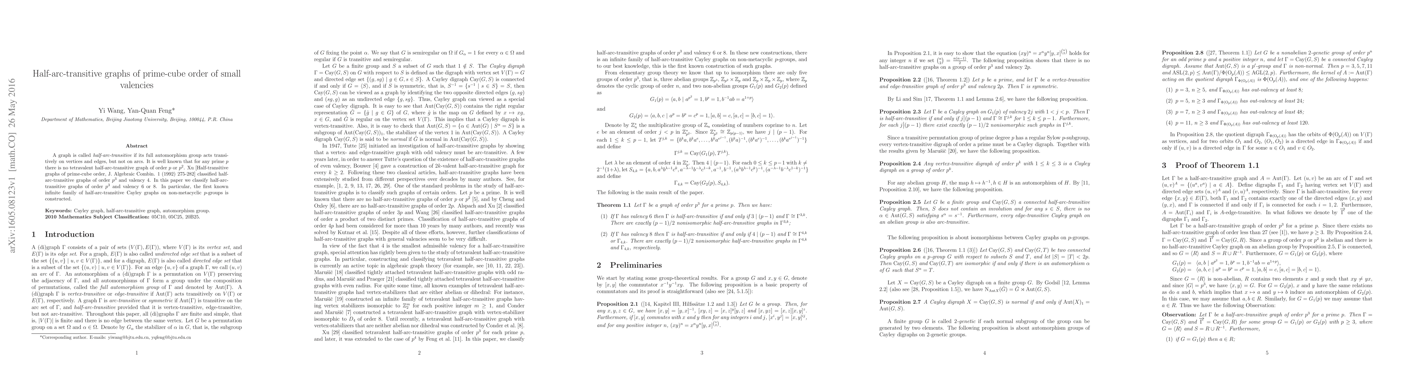 This paper classifies half-arc-transitive graphs of prime-cube order ($p^3$) with valencies 6 or 8, extending previous work by Xu on valency 4. It also introduces the first known infinite family of half-arc-transitive Cayley graphs on non-metacyclic $p$-groups.