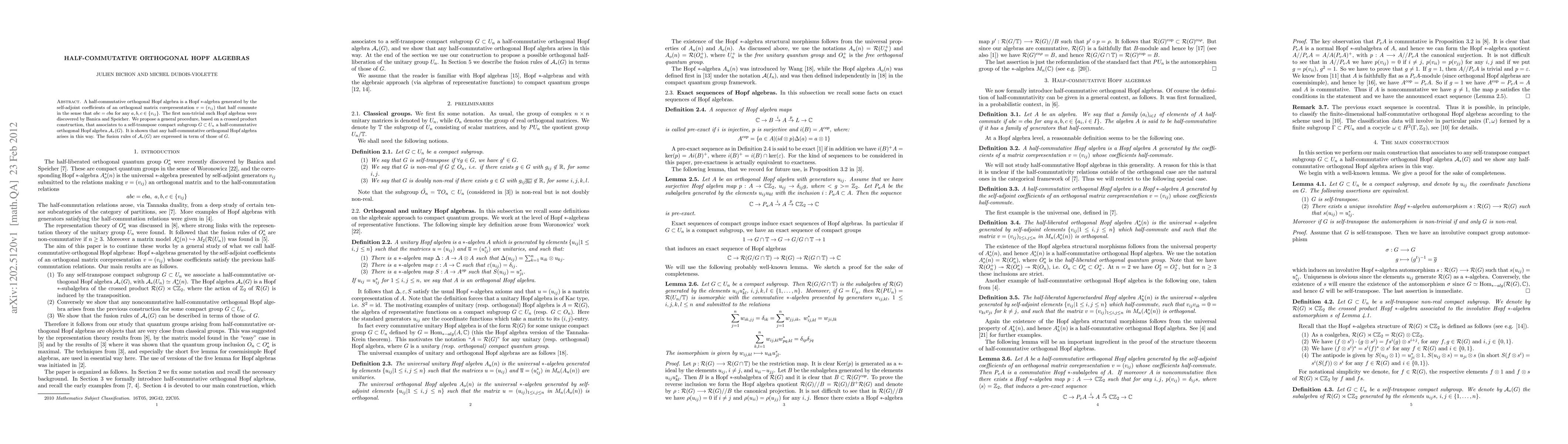 A half-commutative orthogonal Hopf algebra is a Hopf *-algebra generated by the self-adjoint coefficients of an orthogonal matrix corepresentation $v=(v_{ij})$ that half commute in the sense that $abc=cba$ for any $a,b,c \in \{v_{ij}\}$. The first non-trivial such Hopf algebras were discovered by Banica and Speicher. We propose a general procedure, based on a crossed product construction, that associates to a self-transpose compact subgroup $G \subset U_n$ a half-commutative orthogonal Hopf algebra $\mathcal A_*(G)$. It is shown that any half-commutative orthogonal Hopf algebra arises in this way. The fusion rules of $\mathcal A_*(G)$ are expressed in term of those of $G$.