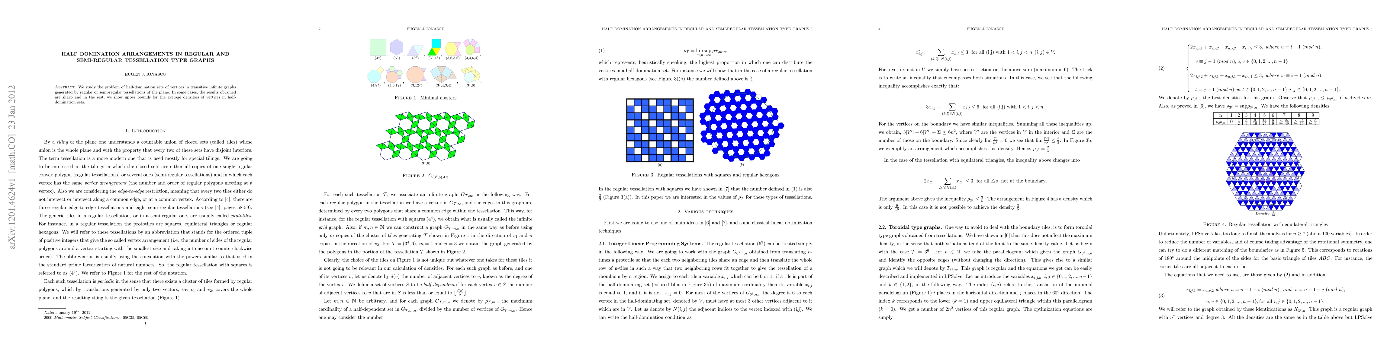 We study the problem of half-domination sets of vertices in vertex transitive infinite graphs generated by regular or semi-regular tessellations of the plane. In some cases, the results obtained are sharp and in the rest, we show upper bounds for the average densities of vertices in half-domination sets.